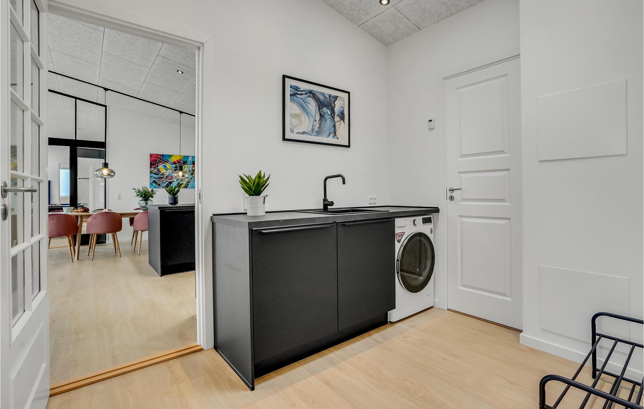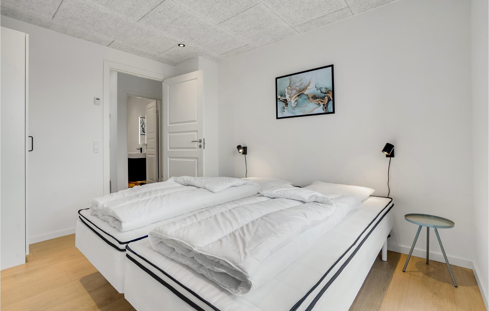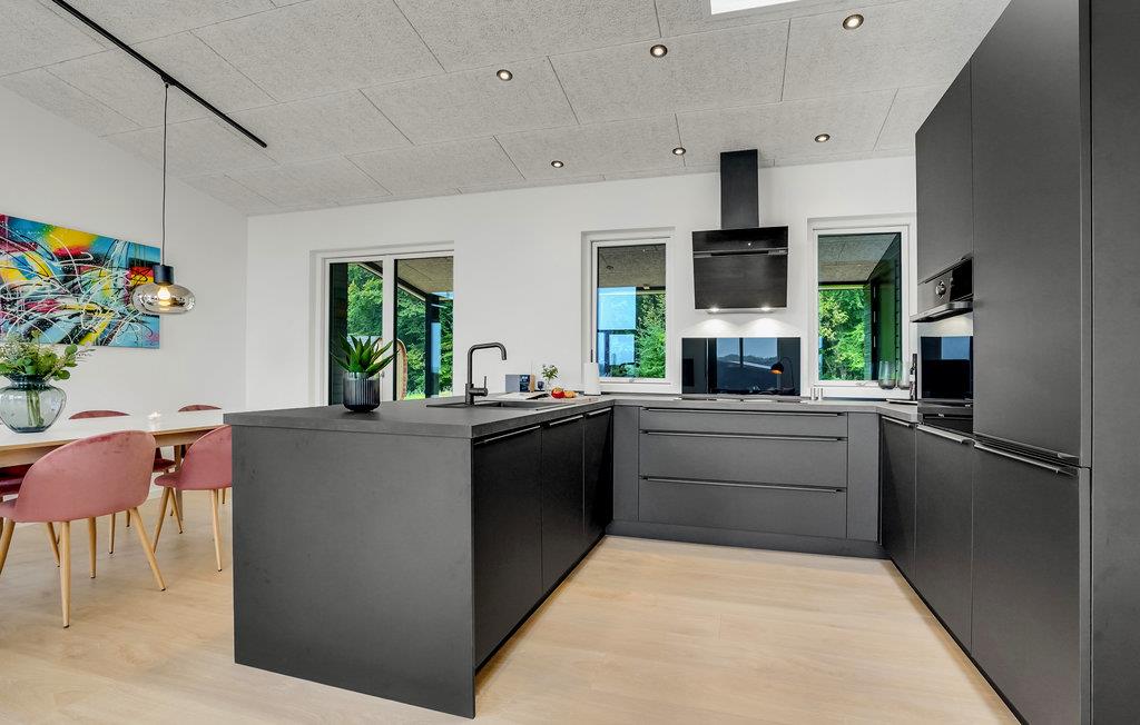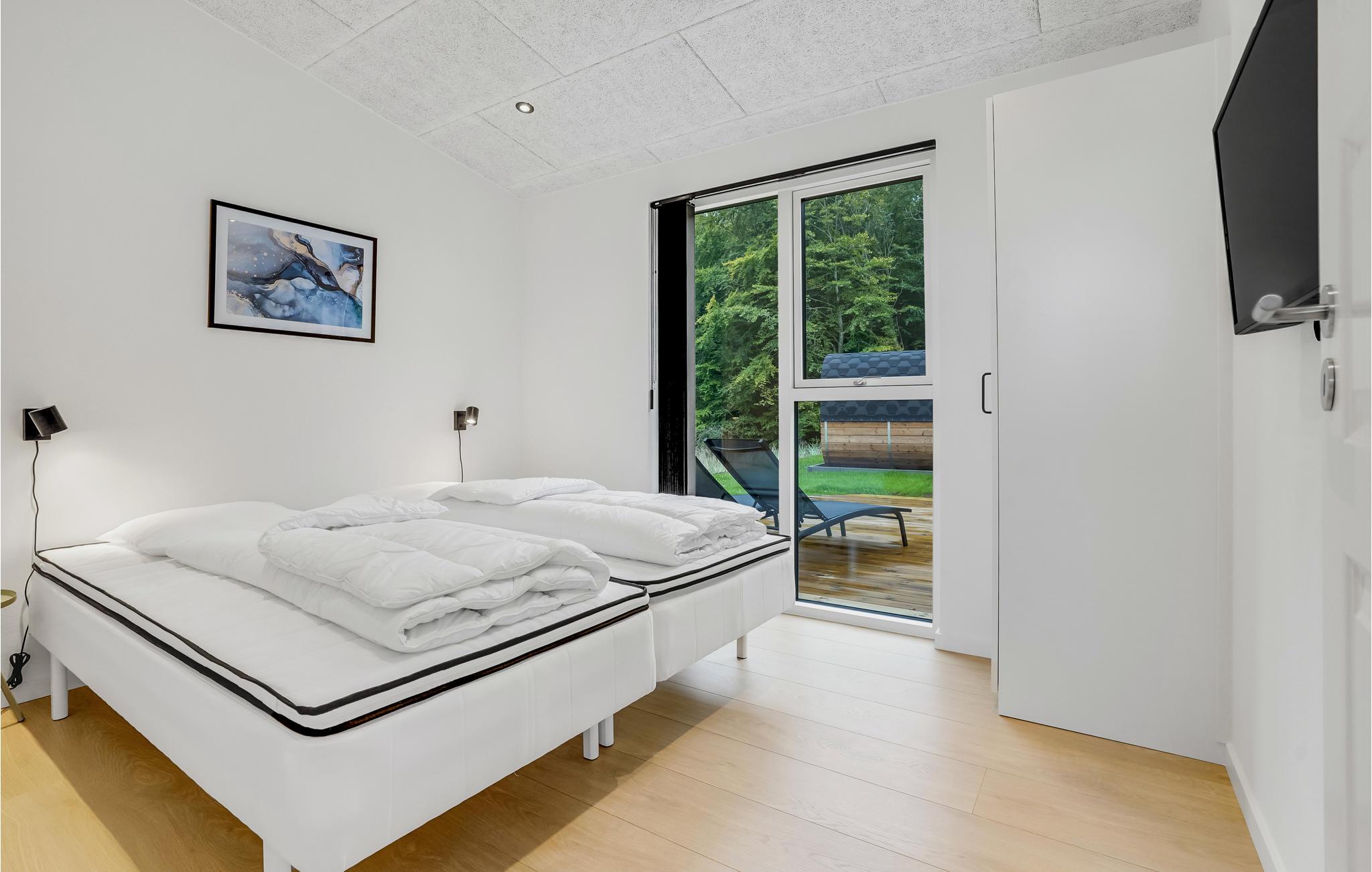Velkommen til dette moderne, rummelige sommerhus af høj kvalitet i skandinavisk stil. Det rummelige sommerhus har plads til f.eks. 2-3 familier fordelt i fire soveværelser med gode senge og to store hemse med to sovepladser på hver. De store vinduespartier byder på et fantastisk lysindfald til den store stue med åben forbindelse til køkkenet. Her kan I samle familie eller venner til de hyggelige filmaftener med streaming af jeres yndlingsfilm, eller nyde god mad i dejligt selskab.