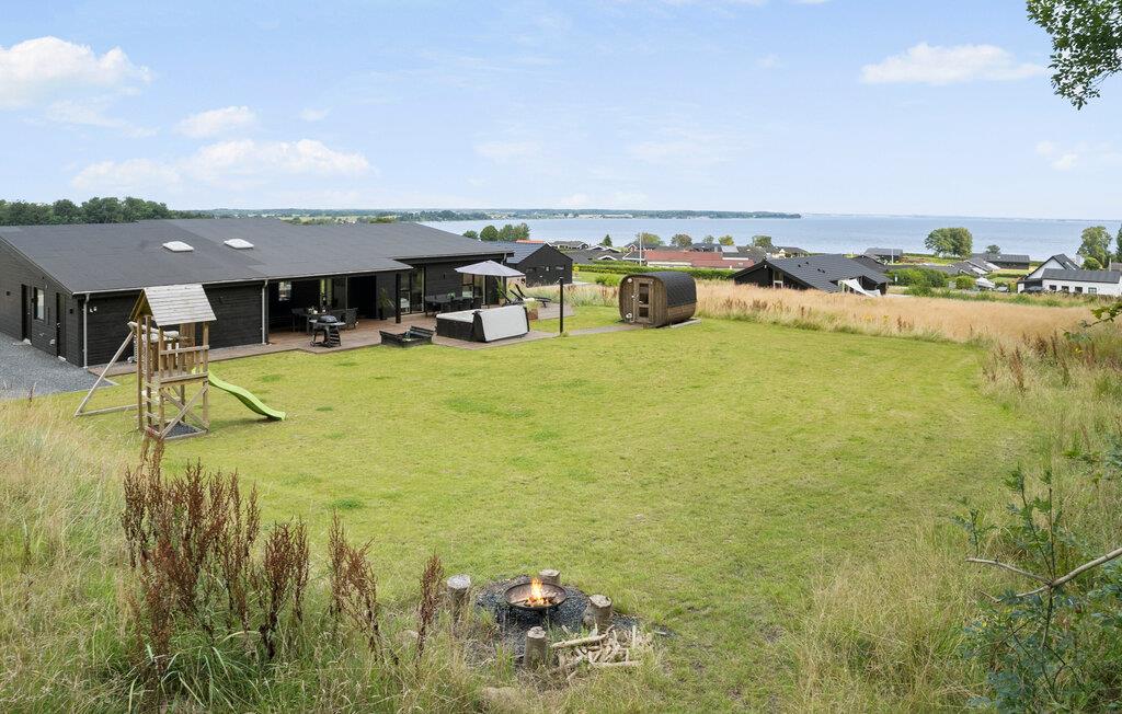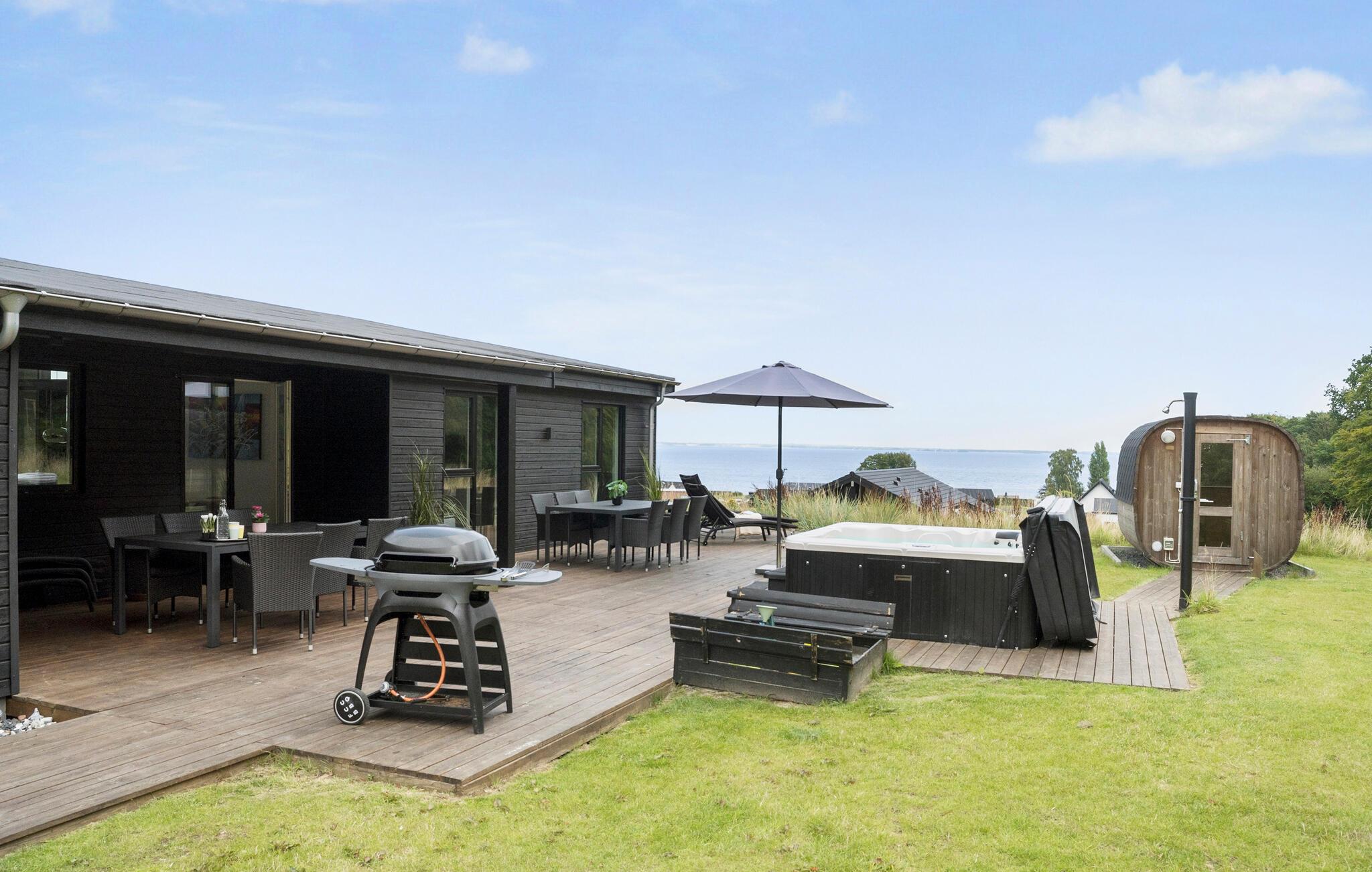 Luksuriøst sommerhus ved Grønninghoved Strand med spa, sauna og aktivitetsrum, perfekt til familier og venner.