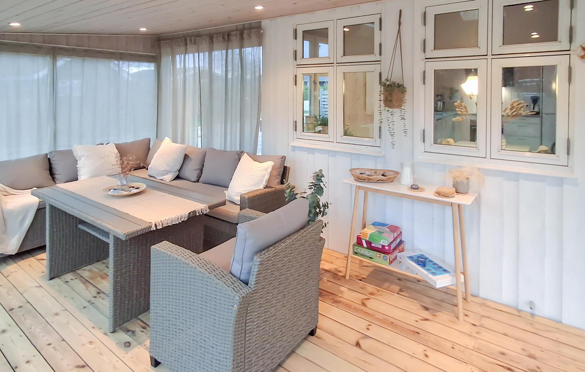 Huset imponerer med sin moderne og samtidig hyggelige atmosfære. Lyst træ, en behagelig sofagruppe og en brændeovn skaber en stemning, hvor I hurtigt vil føle jer hjemme. Uanset om I nyder en kop kaffe og en god snak, lytter til jeres yndlingsmusik eller holder en hyggelig spilleaften, kommer I hurtigt i feriestemning her.