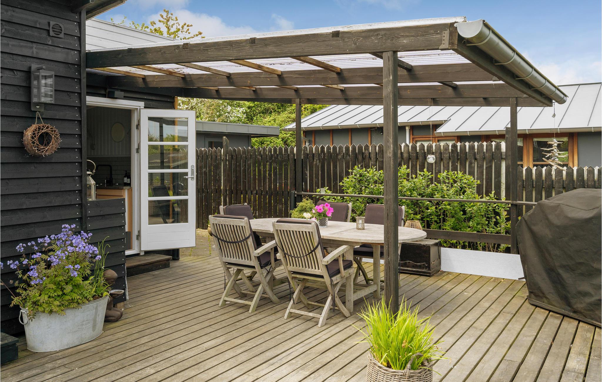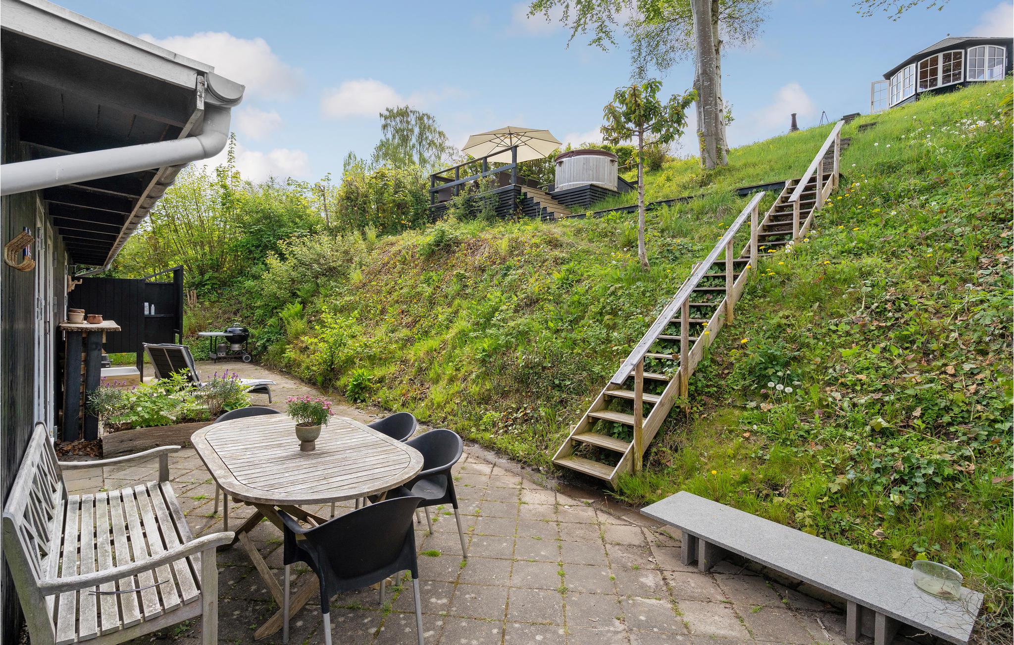 Her kan hele familien boltre sig! På en smuk beliggenhed ved Lillebælt byder husets lyse rum med hjemlige møbler og en hyggelig atmosfære jer velkommen. De store vinduer skaber et naturligt lys. Hæld havregrynen op og snak om dagens aktiviteter ved spisebordet. Efter en dejlig feriedag på stranden eller en udflugt kan I lave pizzaer med børnene. Mon ikke de gerne vil bestemme fyldet? Hyg med mor og far på sofaen inden I skal i seng. Nyd solen på terrassen, tænd op i grillen og glæd børnene med snobrødshygge. Fortæl skøre historier omkring bålet, når mørket sænker sig. I morgen kan I gå til den dejlige sandstrand.