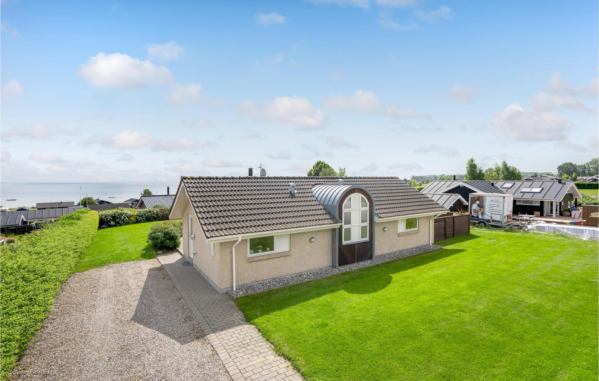 Hyggeligt sommerhus ved Grønninghoved Strand med panoramaudsigt, sauna og spabad for en afslappende ferie.