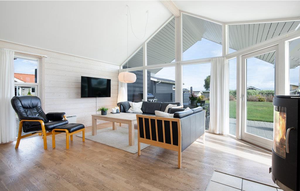 Lækkert sommerhus i Grønninghoved med panoramavinduer, brændeovn, spa og sauna nær strand og natur.
