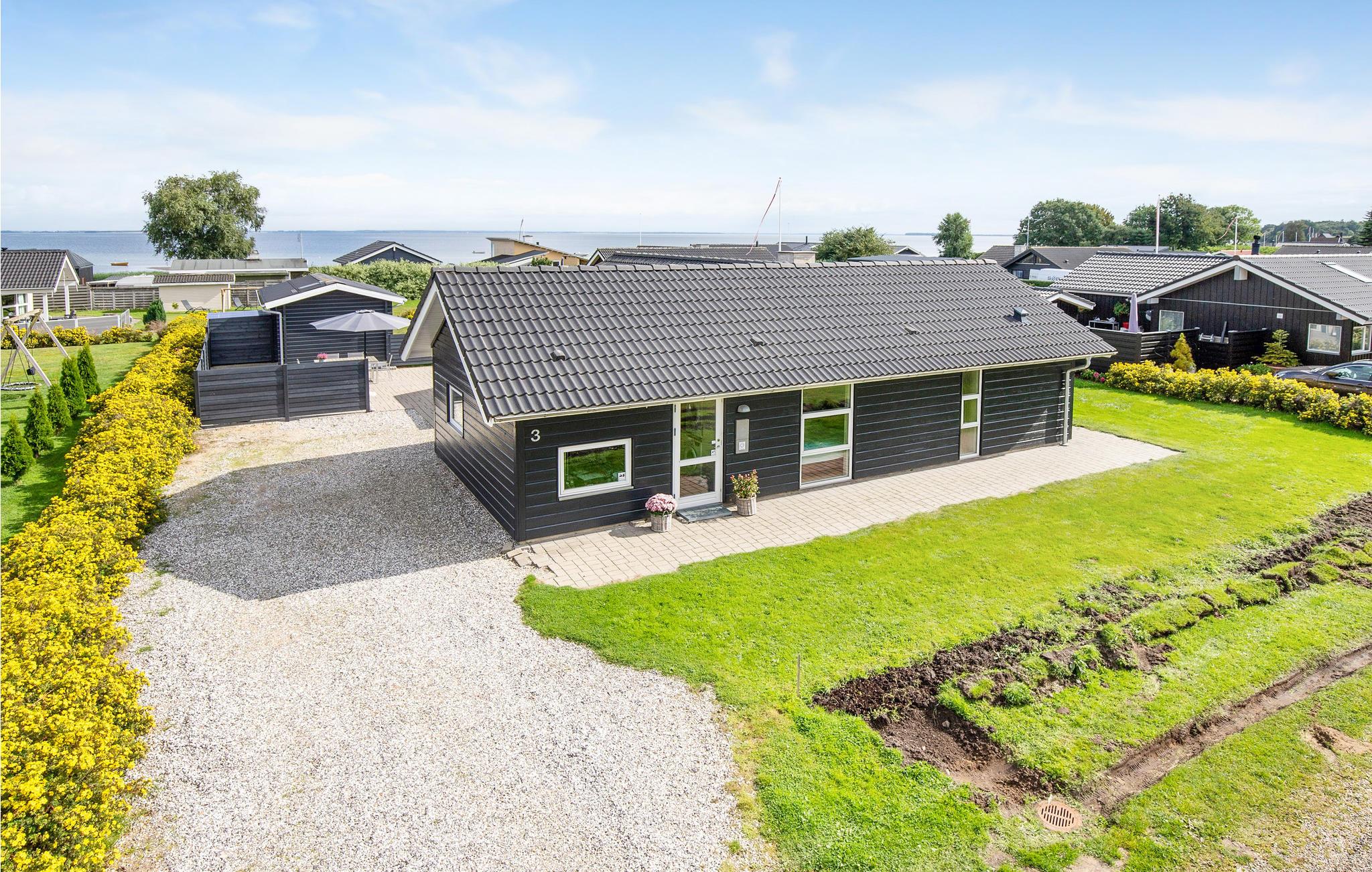 Dette lækre sommerhus fra 2005 er placeret i det naturskønne Grønninghoved. Selve huset er indrettet i lys skandinavisk stil. Husets loft går i kip fra flere sider, hvilket giver nogle smukke vinkler på loftet og et fantasktisk lysindfald fra de store panoramavinduer i stuen. Stue og køkken går ud i et, dog adskilt af en halvmur - stuen er udstyret med en brændeovn, som altid indbyder til hygge, uanset vejret. Gennem de store vinduespartier i stuen har I et smukt kig ud over vandet. Huset indeholder endvidere tre soveværelser og to badeværelser, hvoraf det ene er med spa og adgang til sauna. Til huset hører en stor terrasse, hvorfra I har kig ud over vandet. Haven er anlagt med græs og her er masser af plads til udeliv.