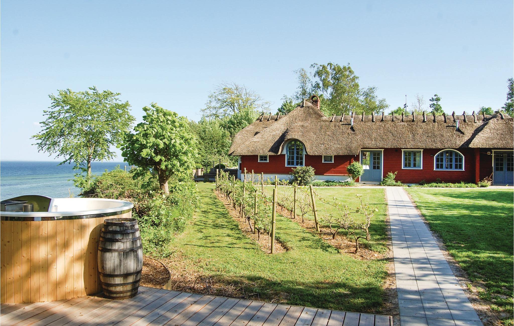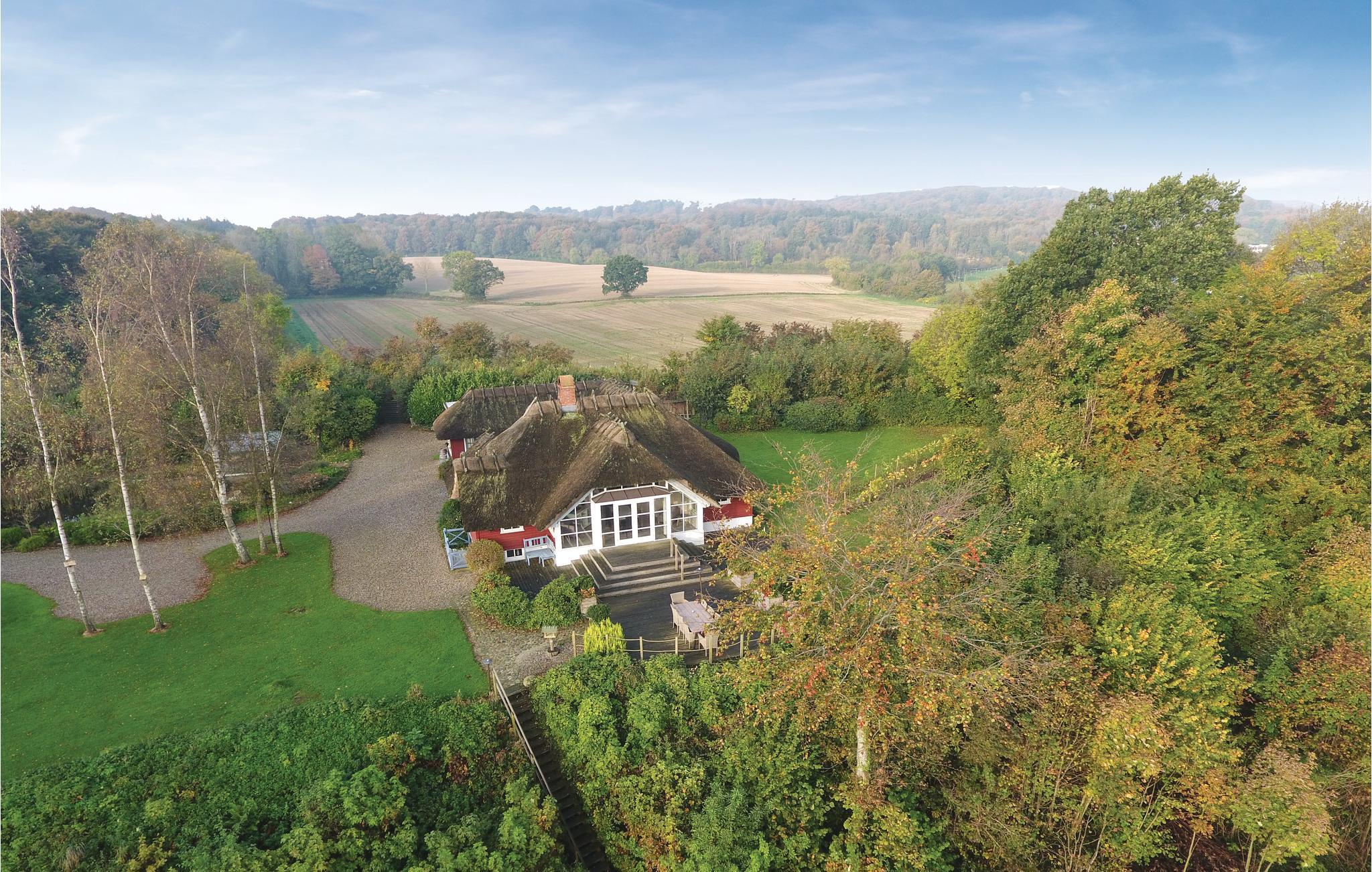 Unikt beliggende sommerhus med en helt fantastisk sjæl. Her er der mulighed for at holde jeres ferie i et skønt sommerhus der med sin dejlige beliggenhed på en 14.000 m2 stor privat grund og egen strandret, ikke findes magen til mange andre steder i Danmark. Det stråtækte sommerhus er omgivet af terrasser, som giver mulighed for en masse udeliv både i de solfyldt dage som i de lune sommeraftener. Den store grund er bl.a. anlagt med en stor have med egen havedam og et orangeri, hvor I kan opholde jer ude langt hen på året, i baghaven er der en række vindrueplanter.