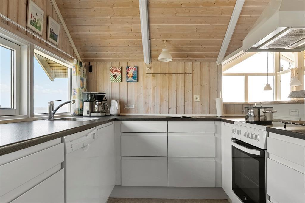 Sommerhuset er indrettet i en lys og indbydende stil, hvor store vinduespartier sikrer et dejligt lysindfald og forbinder inde- og udeliv. Det åbne køkken-alrum danner rammen om hyggelige stunder med familien, og herfra har du direkte adgang til terrassen. Stuen er indrettet med komfortable møbler, der indbyder til afslapning efter en dag i naturen. Soveværelserne er indrettet med gode senge, så du kan vågne veludhvilet op til en ny feriedag. Badeværelset er lyst og rummeligt, og huset byder desuden på spa og sauna, hvor du kan forkæle dig selv med wellness i ferien.