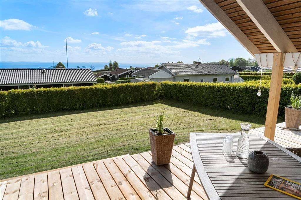 Terrassen er husets naturlige samlingspunkt, hvor du kan nyde udsigten til vandet og de naturskønne omgivelser. Her er havemøbler, liggestole og grill, så du kan nyde lange sommeraftener i godt selskab. Haven er rummelig og velegnet til leg og boldspil, og i kort gåafstand finder du en stor legeplads, hvor børnene kan boltre sig. Den børnevenlige strand indbyder til badning, sandslotte og afslapning i strandkanten.