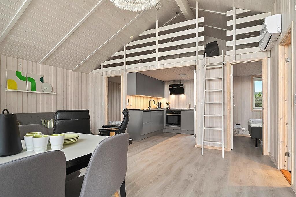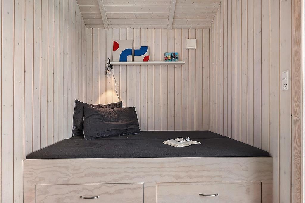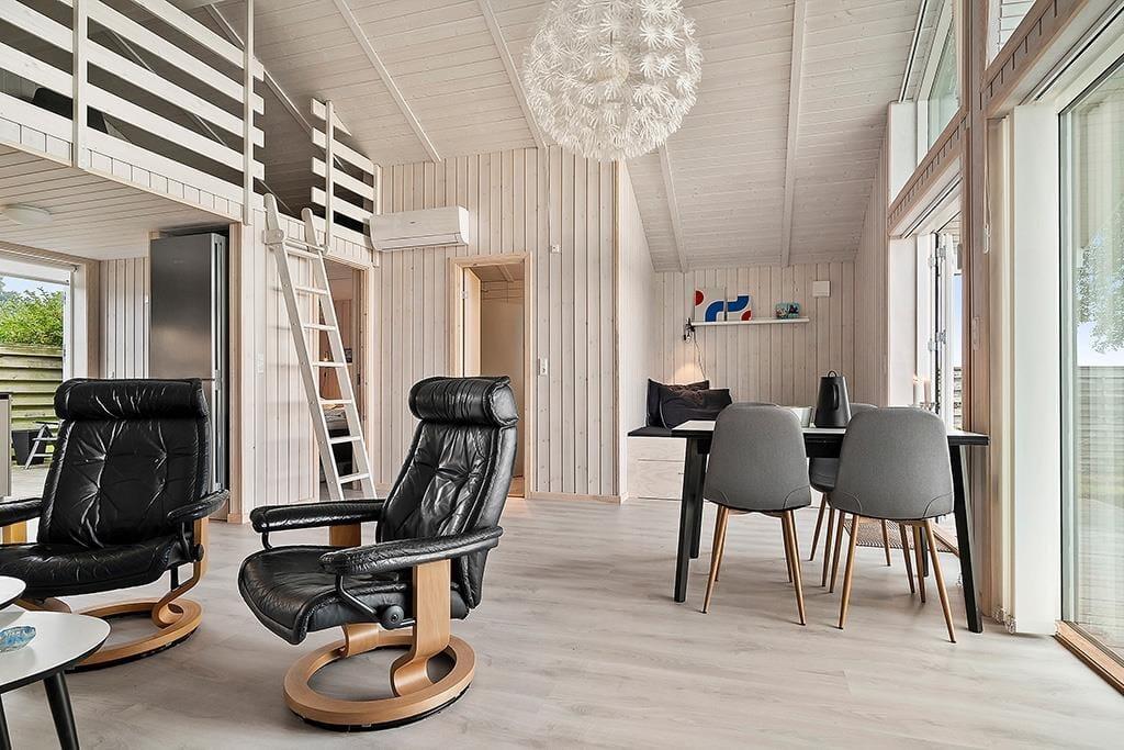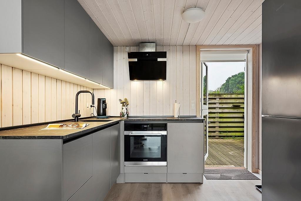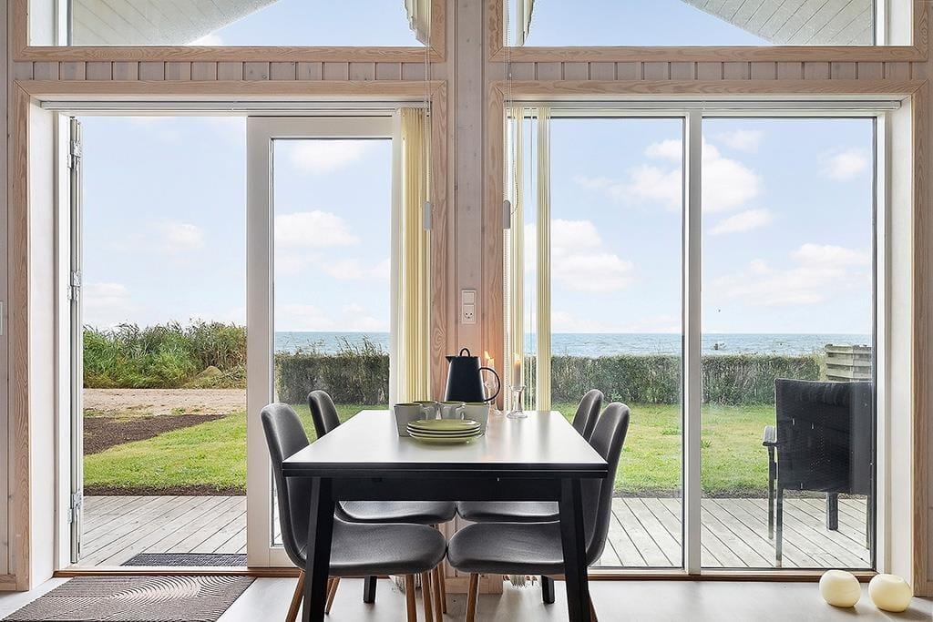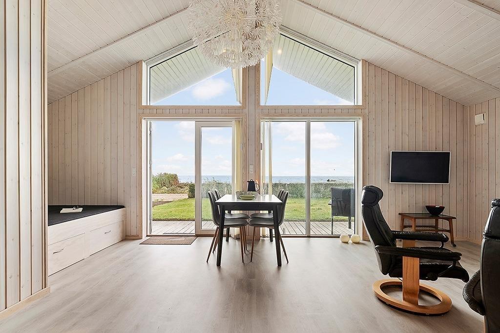 Sommerhuset fremstår lyst og indbydende efter den gennemgående renovering, hvor moderne komfort er kombineret med klassisk sommerhusstemning. Indretningen er enkel og funktionel med gode møbler og store vinduespartier, der lukker masser af lys ind – og ikke mindst giver dig en helt fantastisk udsigt over havet. Køkkenet ligger i åben forbindelse med stuen, så du kan lave mad, mens samtalen fortsætter rundt om spisebordet. Her finder du alt, hvad du har brug for – inklusiv en Quooker, der gør det nemt og hurtigt at få kogende vand til madlavning, te eller kaffe. Når aftenen falder på, kan du trække dig tilbage i sofahjørnet til et spil kort, en film eller blot ren afslapning.
