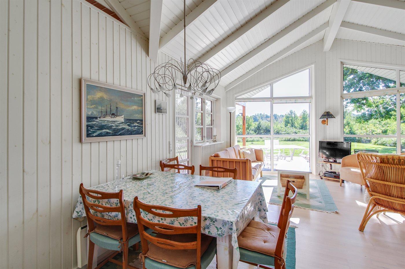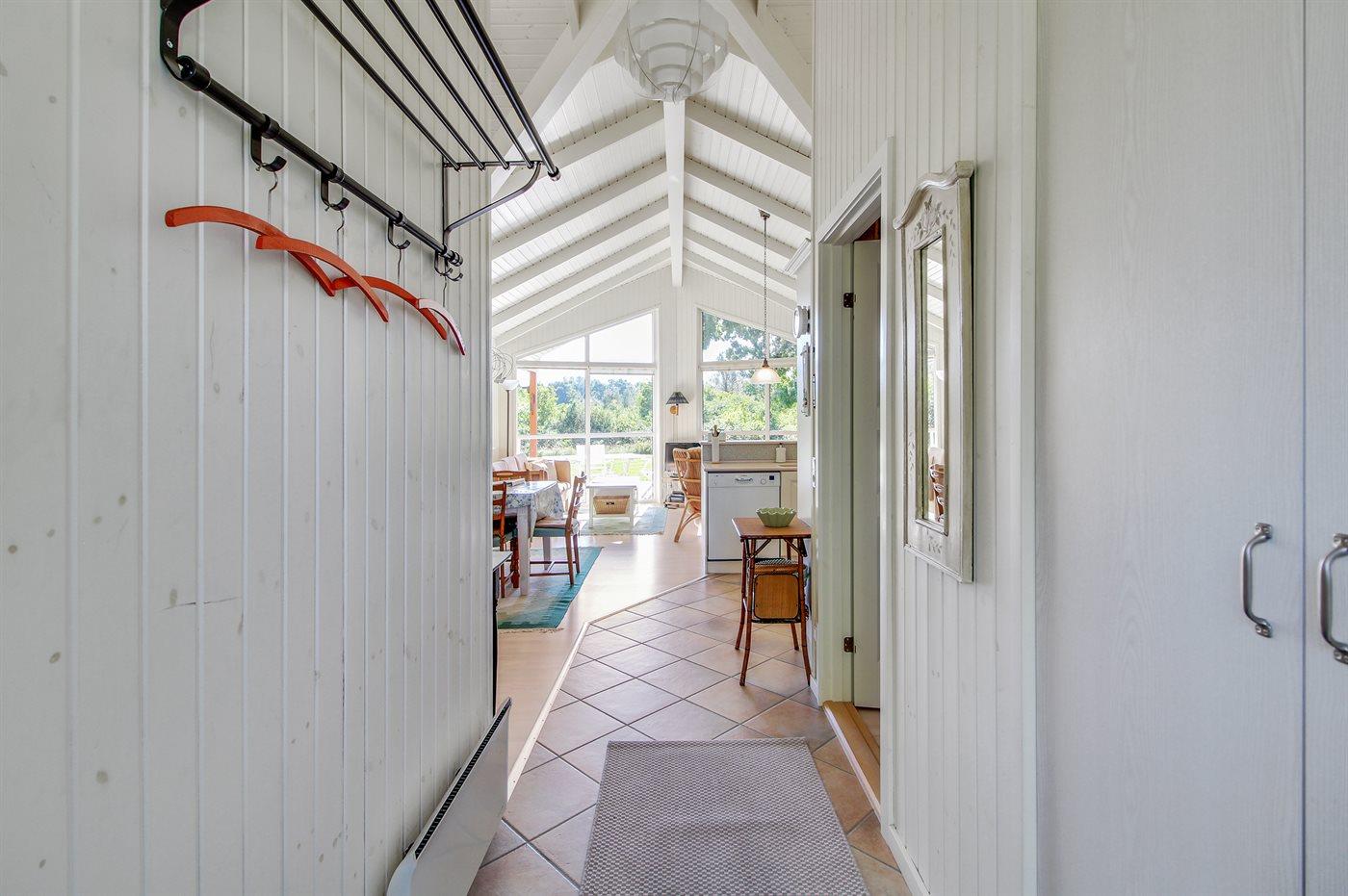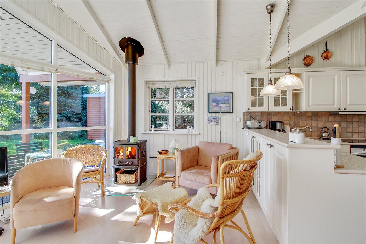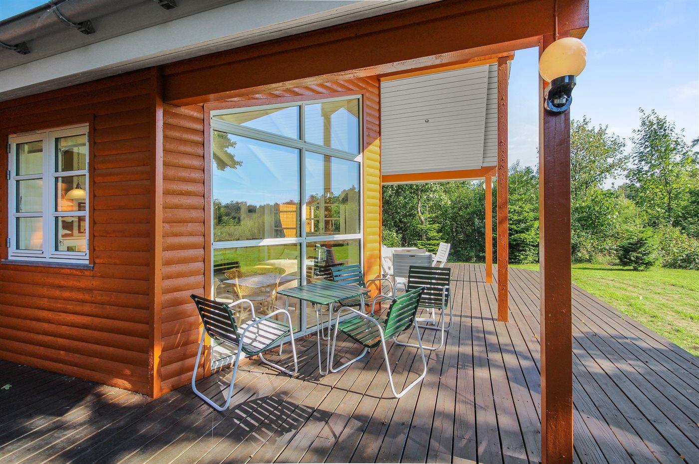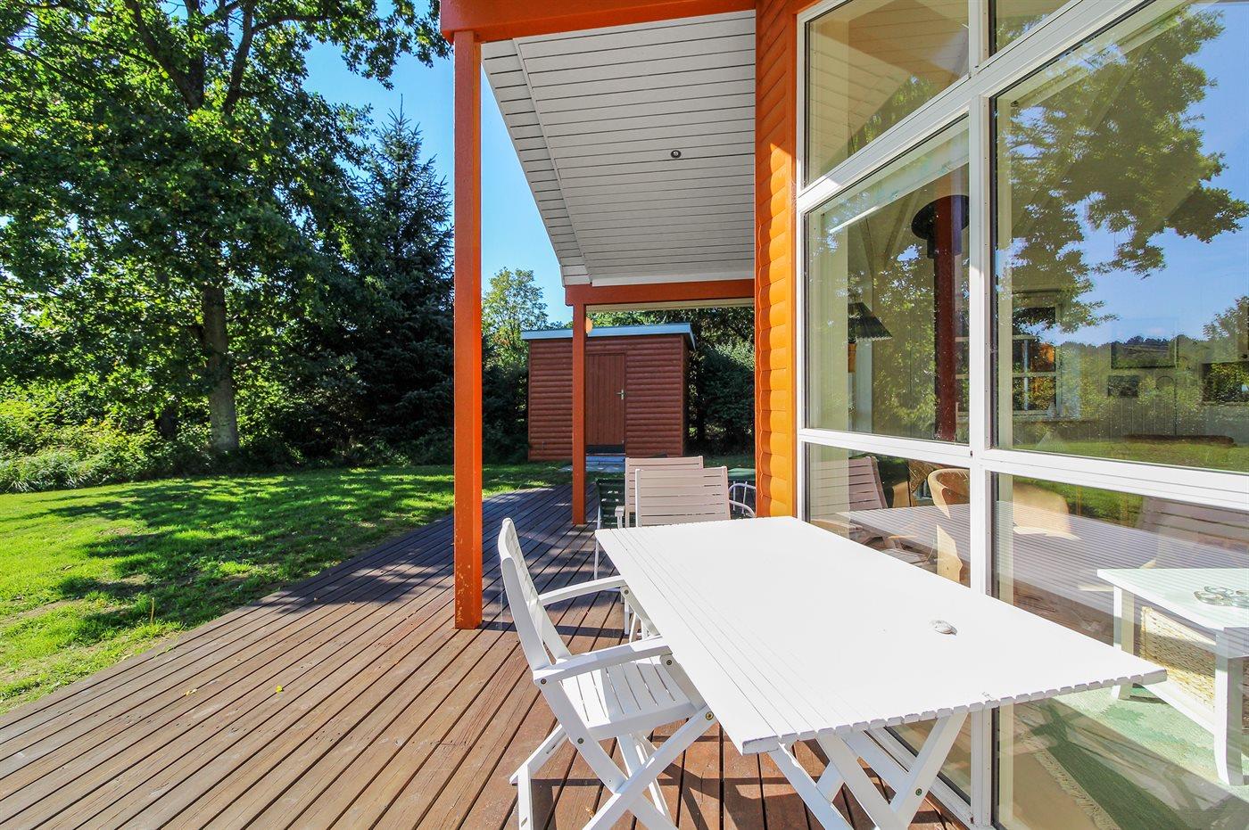 På en naturgrund kun 300 m fra en af Jyllands bedste badestrande finder I dette flotte sommerhus i træ, bygget i 2006/2007. Til huset hører et dejligt, delvist overdækket terrasseareal. Indvendig er der overalt lyse trævægge og -lofter. Gulvene er ligeledes af træ, dog er der i gang, køkken og badeværelser opvarmede klinkegulve. Flot badeværelse med 2 pers. spa, dampkabine med massagedyser samt skabsarrangement. Ekstra badeværelse med bruseniche, vaskemaskine og tørretumbler. Dejligt, lyst køkken med opvaskemaskine, mikrobølgeovn, fryser samt komfur med keramiske kogeplader og varmluftovn. Den pænt møblerede stue er kombineret med køkkenet og udstyret med bl.a. brændeovn, DVD-afspiller, ghettoblaster med CD-afspiller og TV tilkoblet fællesantenne. Huset har 3 dejlige soveværelser; 1 med dobbeltseng og 2 med hver 2 enkeltsenge. Fra det ene soveværelse er der adgang til badeværelse. Desuden hems med 2 sovepladser. Et flot sommerhus beliggende tæt på skov, strand og hede. Af attraktioner og aktivitetsmuligheder kan bl.a. nævnes Djurs Sommerland, Kattegatcentret, golfbane og mange fiskemuligheder.