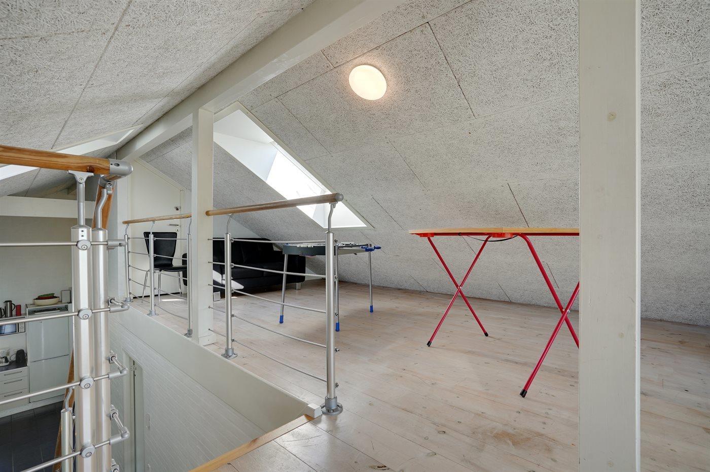 Der er i alt 4 soveværelser. Sovepladserne fordeler sig på: 4 sovepladser i dobbeltsenge. 3 sovepladser i enkeltsenge. 2 sovepladser i køjeseng. 3 sovepladser på madrasser. De 3 sovepladser på madrasser befinder sig på husets store hems, hvor der også findes bordfodbold og bobspil.