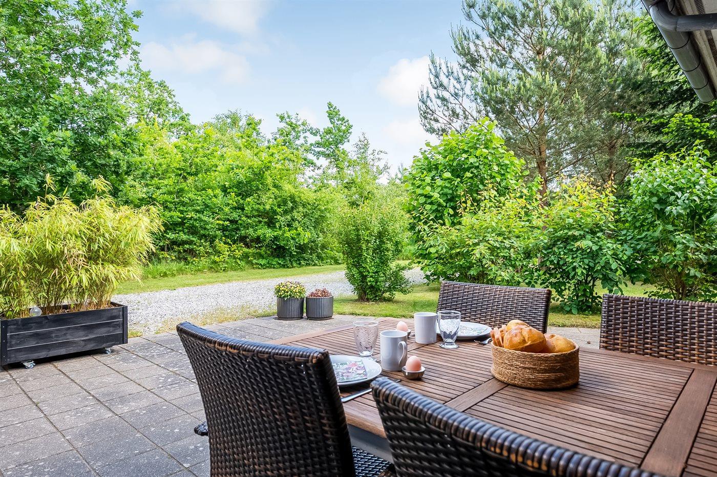 Der findes som sagt flere skønne terrasser på flere sider af huset, hvor man kan sidde i helt ugenerte omgivelser og nyde stilheden og de smukke omgivelser med et glas god vin eller en kop kaffe. Tilmed er terrassen også delvist overdækket, således de skønne sommeraftener kan forlænges.