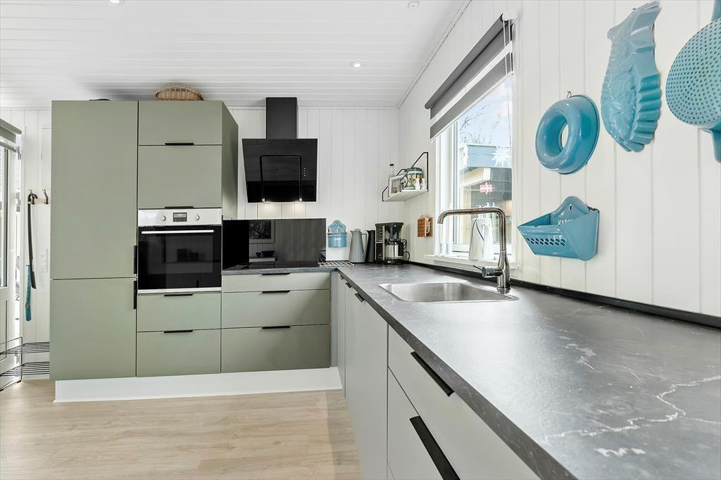 i et sortmalet træhus, der emmer af charme, hygge og velvære. Sommerhuset er istandsat med en stil, der blander moderne funktionalitet med den helt særlige sommerhusstemning. Indenfor bliver du mødt af et lyst og indbydende køkken, der smelter sammen med spiseområdet og den hyggelige stue. Her kan du næsten se familien samles om et brætspil eller nyde et glas vin efter en lang dag ved vandet. De to rummelige soveværelser lover rolige nætter, mens badeværelset med bruser og vaskemaskine gør det let at være på ferie – også med sandede fødder og våde badehåndklæder. Og som prikken over i’et – et nyt anneks, der oser af komfort. Med to værelser – ét med dobbeltseng og ét med to enkeltsenge – samt et elegant badeværelse, er her plads til både familie og venner, der skal have lidt ekstra ro.