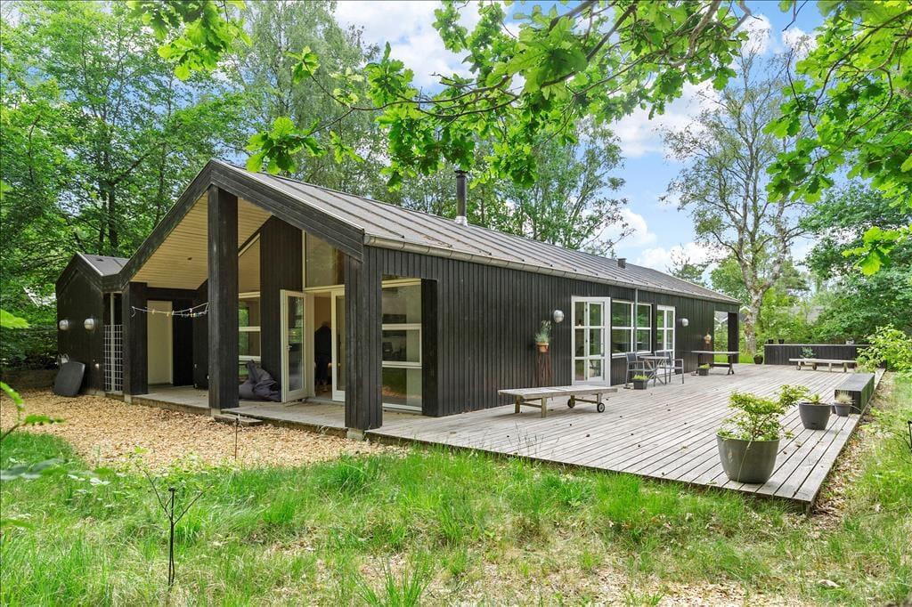 Natur, leg og afslapning under åben himmel. Når solen skinner, er husets store terrasse det perfekte samlingspunkt. Her kan I nyde lange morgenmåltider under den overdækkede del, grille på de lune aftener og lade børnene lege i sandkassen og haven, mens I slapper af i de komfortable havemøbler. Når mørket falder på, kan ny nyde lysene i træerne og et køligt glas mens dagens oplevelser tænkes igennem.