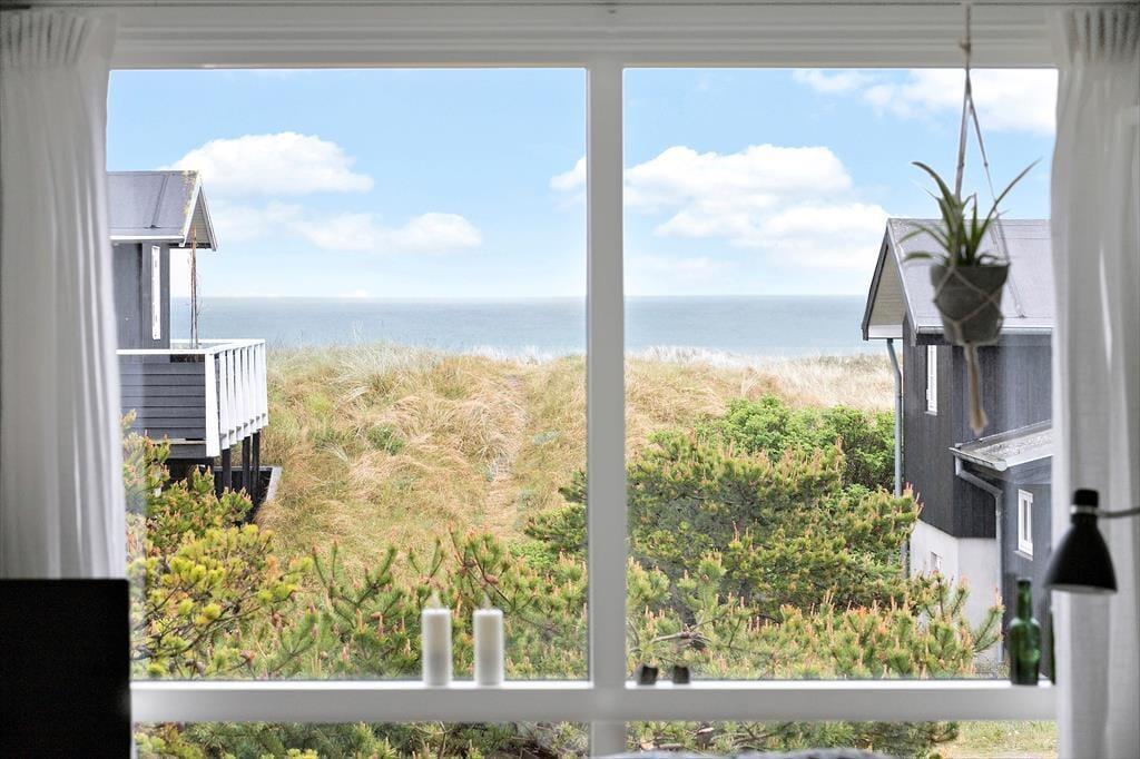 Huset emmer af autentisk sommerhusstemning og fordeler sig over to etager. På overetagen finder du en åben og lys kombination af stue og køkken, hvor havudsigten følger med uanset hvor, du er. Herfra er der direkte adgang til to træterrasser, der giver dig valget mellem morgensol eller solnedgang. Den lille terrasse er perfekt til en hyggelig middag under aftensolen, mens den store terrasse byder på morgenkaffe, solbadning og udendørs måltider, mens du nyder udsigten til klitterne og havet.