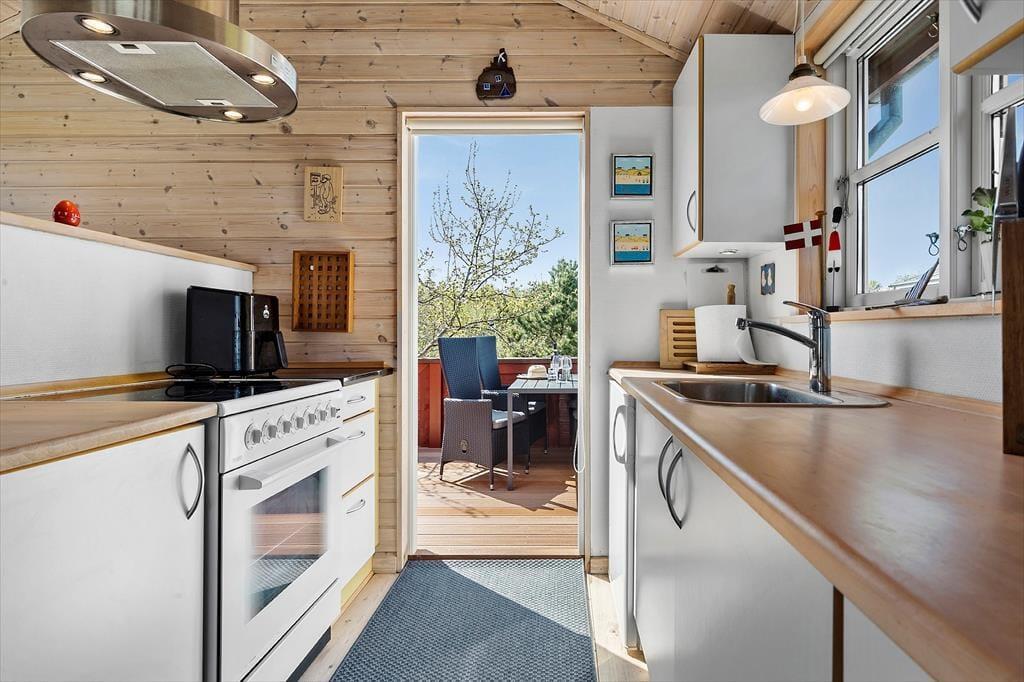 På første sal samles ferieøjeblikkene i det hyggelige køkken, der er herligt forbundet med stuen. Her dufter det af kaffe og frisk luft, og døren til terrassen står åben det meste af dagen. Det er ikke bare udsigten og naturen, der lokker – den strømmer ind og bliver en del af rummet. Du ser klitterne, hører lærken, og hele huset føles som en naturlig forlængelse af naturen udenfor. Her er bare så dejligt.