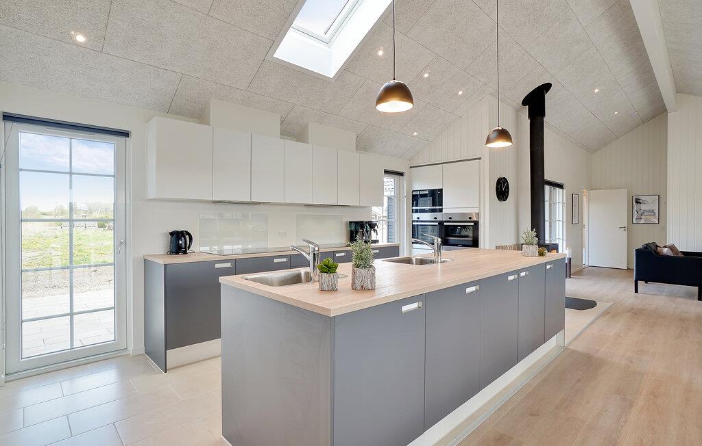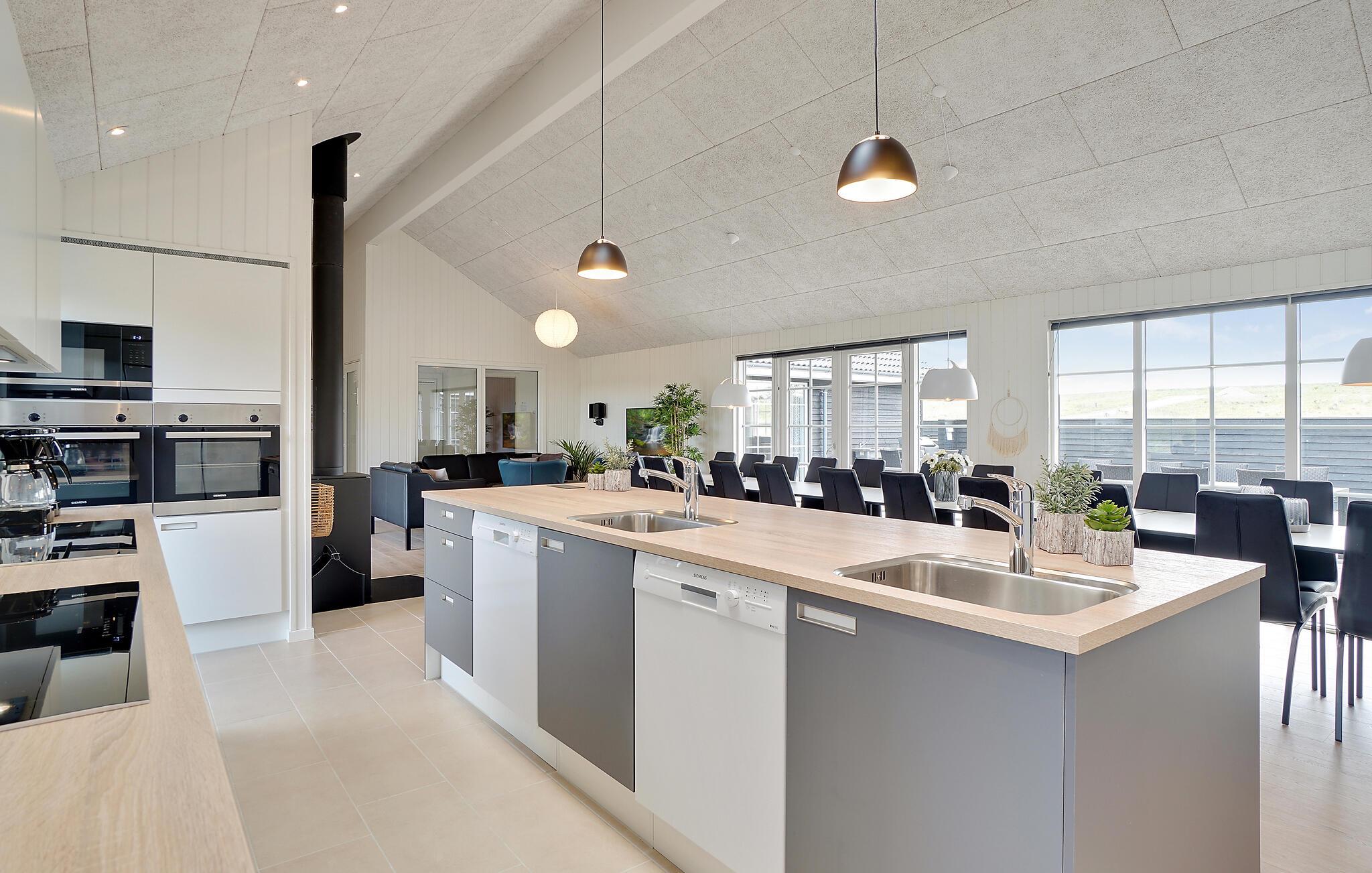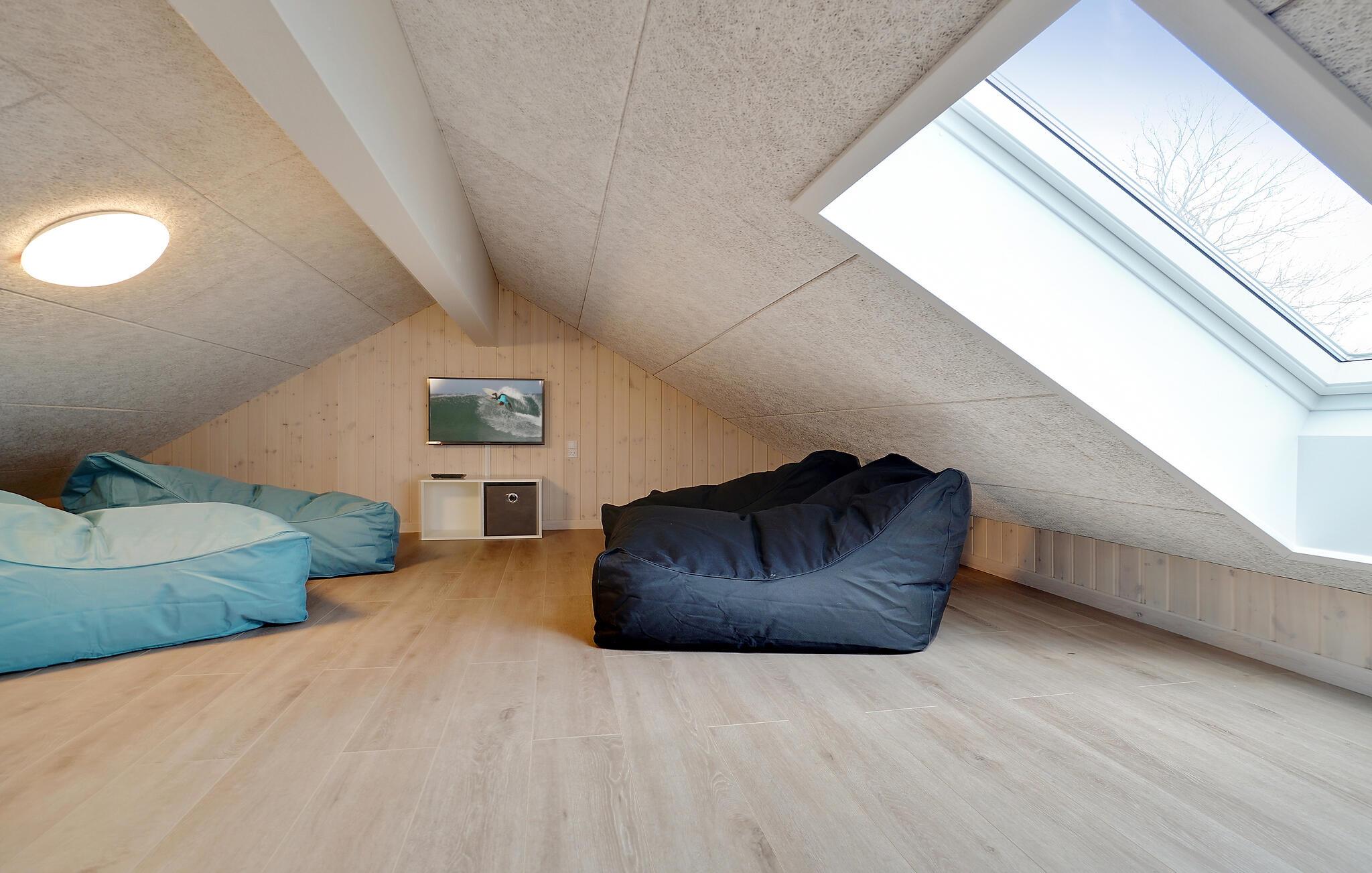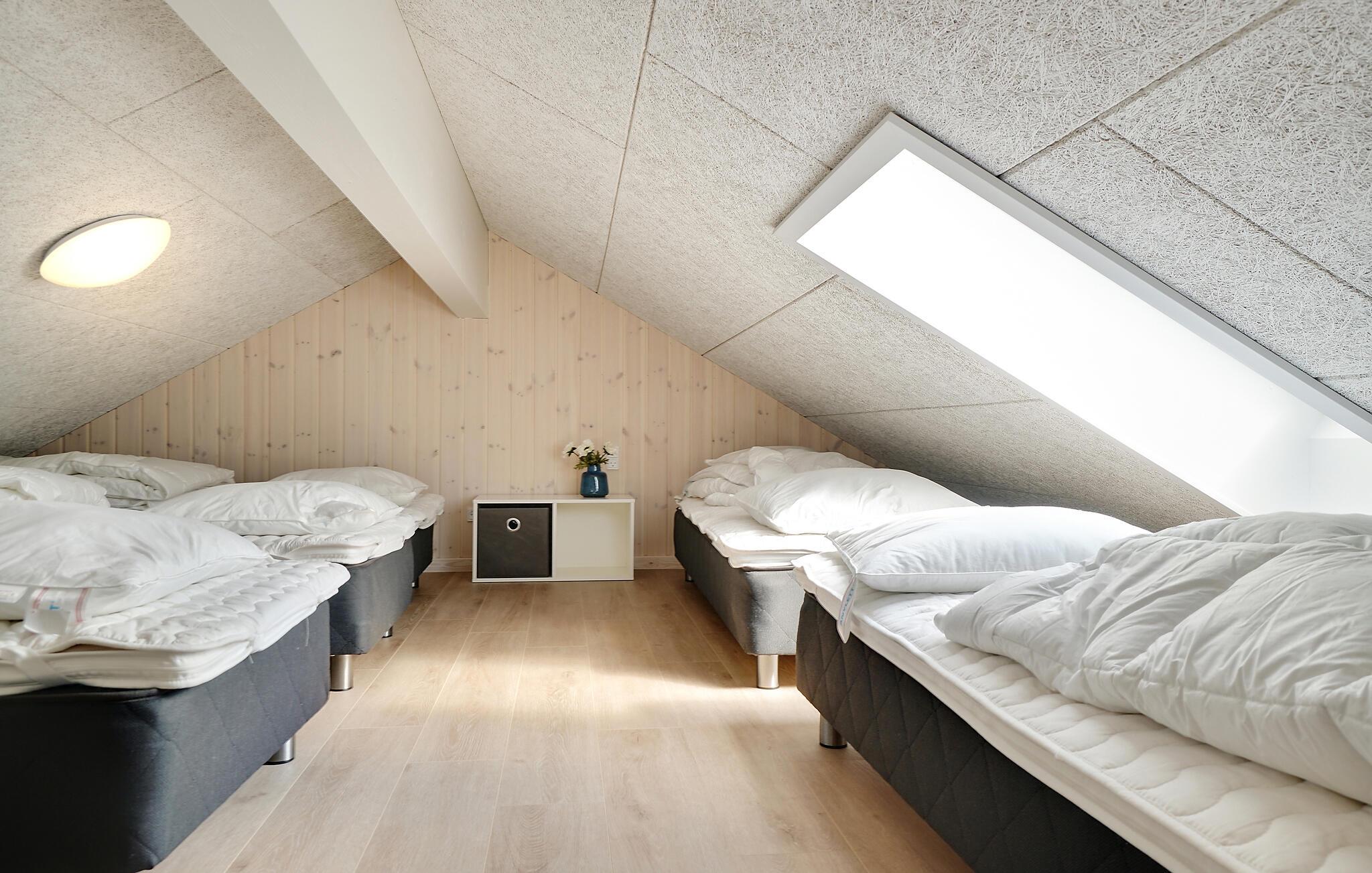Når I kravler til køjs, foregår det i et af de 10 soveværelser eller på hemsene (6 sovepladser bedst til børn eller unge). Soveværelserne er fordelt på 3 soveafdelinger, hvilket igen er smart, hvis halvdelen af familien ønsker at gå tidligt til ro, mens andre kan blive oppe uden at forstyrre. I alt har sommerhuset fire badeværelser.