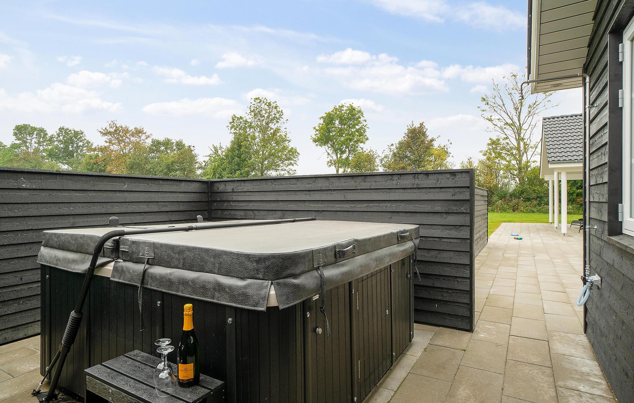 Er I til endnu mere velvære, kan I hoppe i den udendørs jacuzzi og opleve både boblende varme og frisk luft på samme tid.