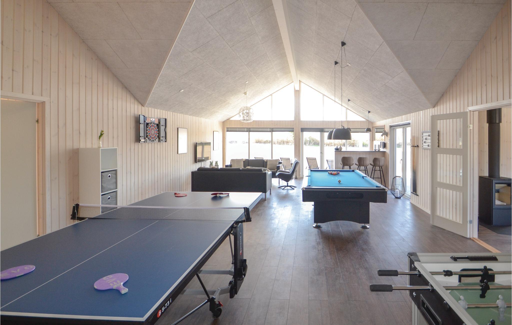 Kystbyen Grenaa er omgivet af flot natur og en fantastisk badestrand og ikke langt fra Djurslands mange attraktioner ligger dette skønne sommerhus, som tilbyder de bedste rammer for en sjov ferie året rundt! Trækker Aarhus med mange spændende butikker og oplevelser, så kan storbyen nås på under en time. Huset har plads til hele 30 personer. Hop en tur i den 23 m² store pool eller slap af i spabadet, så længe I har lyst! Holder I ferie i dette sommerhus er der ingen grænser for, hvor længe vandhunde og badeglade gæster kan boltre sig i husets eget pool område. Her er også en dejlig sauna og en vandrutsjebane. I dette hus er der uanset vejr og årstid mulighed for en ferie fuld aktiviteter. Her har I nemlig et stort aktivitetsrum, som både er udstyret med pool / billardbord, Playstation 4, bordtennis, dart og bordfodbold. Giv den gas med spillene og nyd en kold forfriskning i sommerhusets helt egen bar med køleskab, som også står i aktivitetsrummet. Udendørs er der også tænkt på masser af sjove aktivitetsmuligheder for alle aldre. Med nabohuset (D70076) deles nemlig et fællesareal bestående af en stor multibane, hvorpå der kan spilles fodbold, volley og basket, og en stor og spændende legeplads til de yngste gæster.