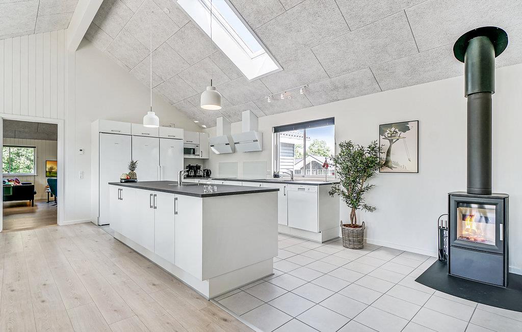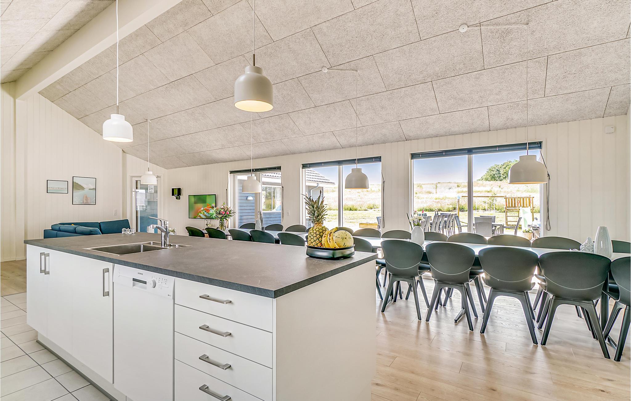 I sommerhuset er et dejlig stort køkkenalrum, med direkte udgang til terrassen, hvor familien kan samles til måltiderne. Det velindrettede køkken er godt udstyret med 2 køleskabe, komfurer, ovne, vaske, opvaskemaskiner, 1 fryser og 1 mikrobølgeovn.