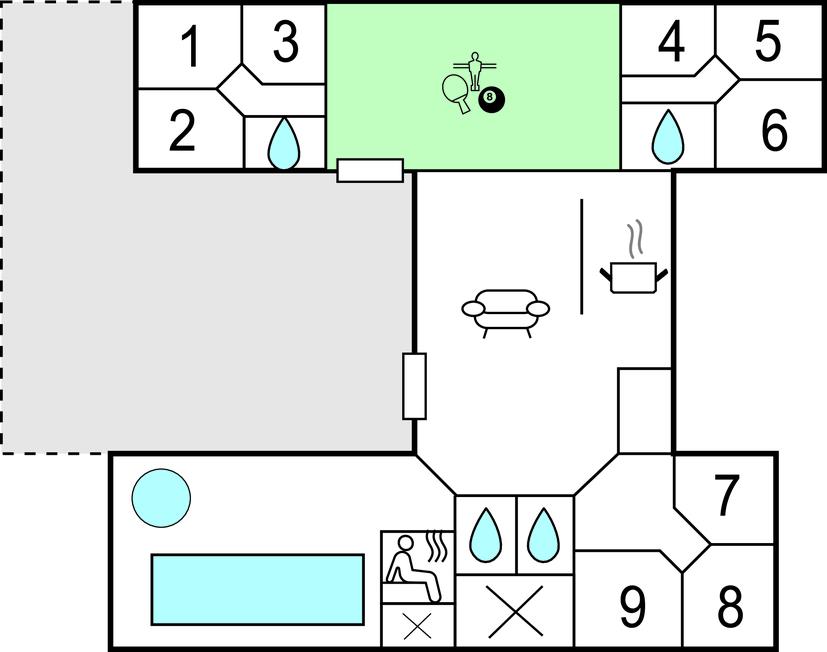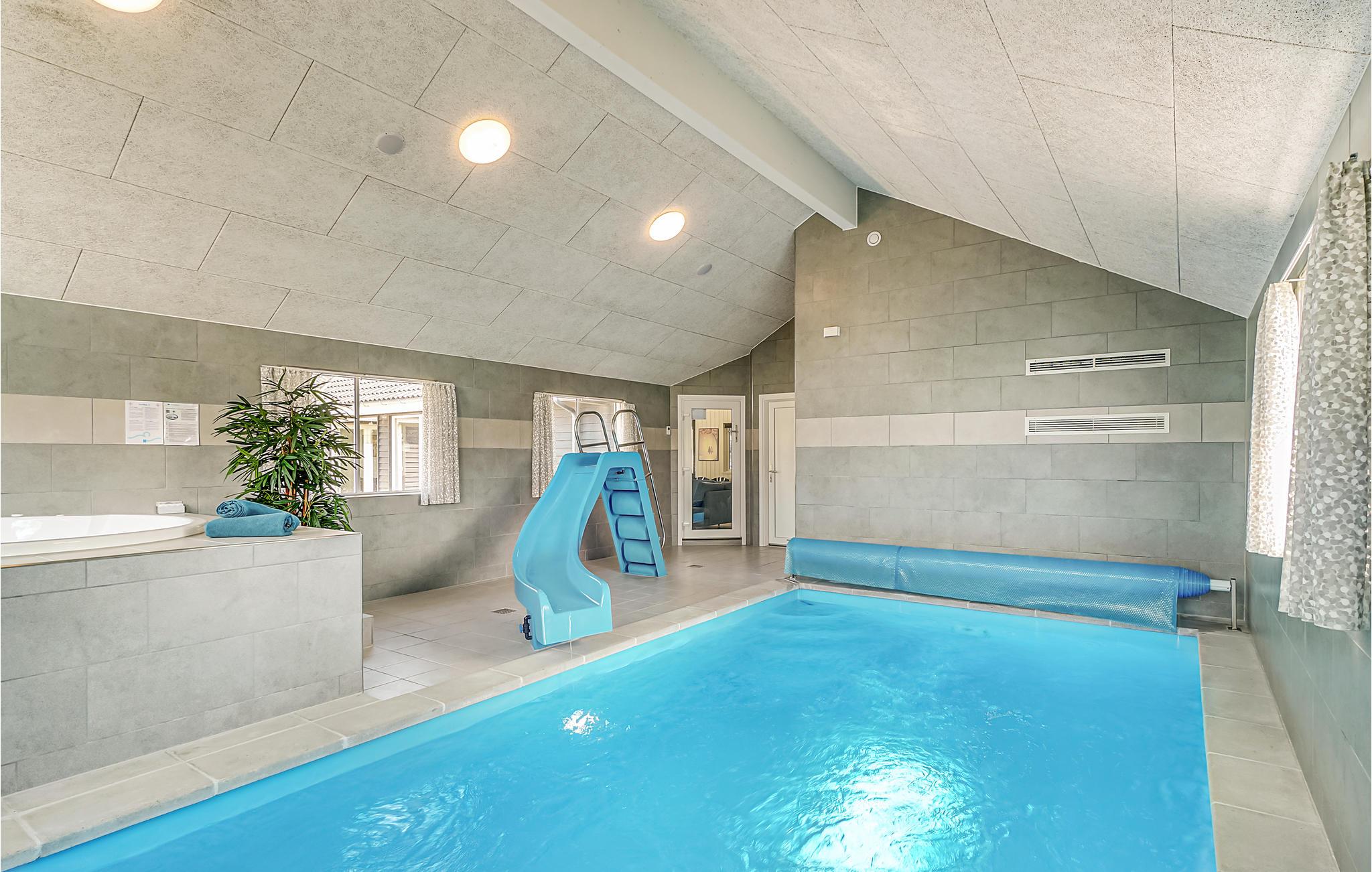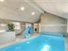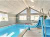 Vandhunde og badenymfer er i paradis i dette sommerhus. Her er nemlig en stor indendørs swimmingpool, hvor der kan plaskes og bades dagen lang. Poolen har trappe, vandrutsjebane og modstrømsanlæg. I poolområdet finder I også et lækkert spabad og en sauna.