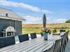 Den delvist overdækkede terrasse er udstyret med havemøbler, to kuglegrill til kul og en udendørs pizzaovn til brænde. Til de solrige dage kan parasollen give lidt skygge. I haven er der både gyngestativ med rutsjebane, sandkasse og trampolin til de yngste gæster og fodboldmål. ( til sommer). Der er ligeledes ladestik til elbiler.