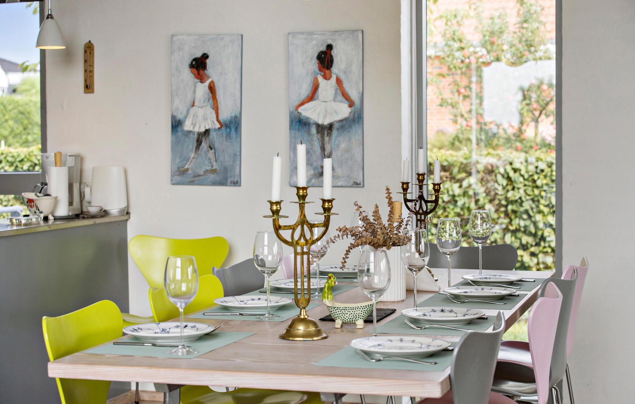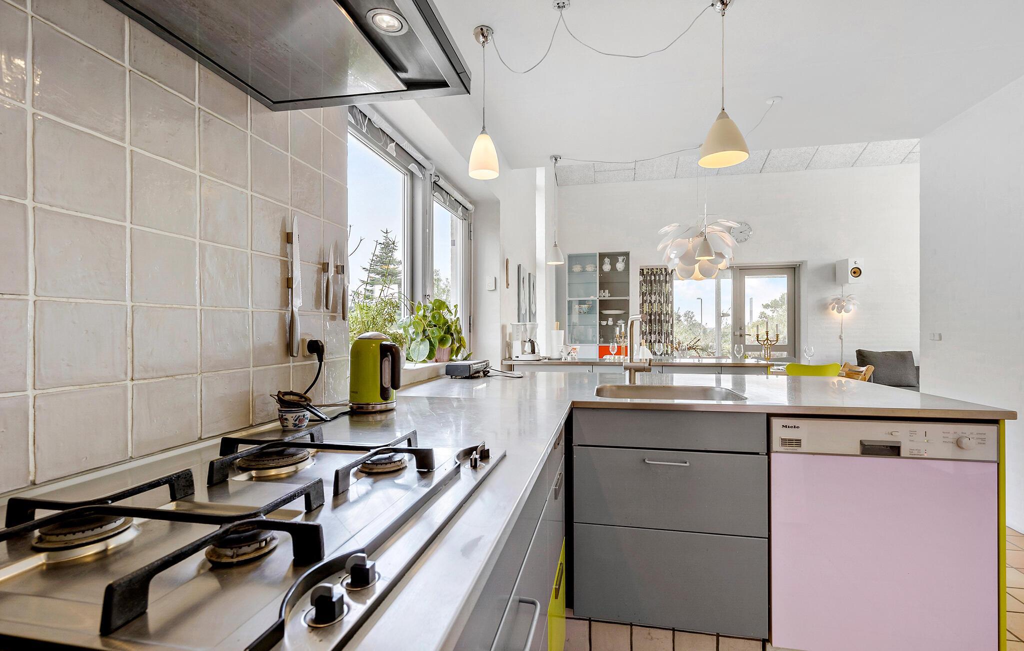Giv jer i kast med lækre ferieretter i det åbne køkken, som er godt udstyret til jeres kulinariske udfoldelser. Derefter kan I dække op ved spisepladsen, som har direkte udgang til terrassen. På de lune dage er det herligt at begynde med kaffe på terrassen eller runde af med et glas vin udendørs, mens mørket falder på.