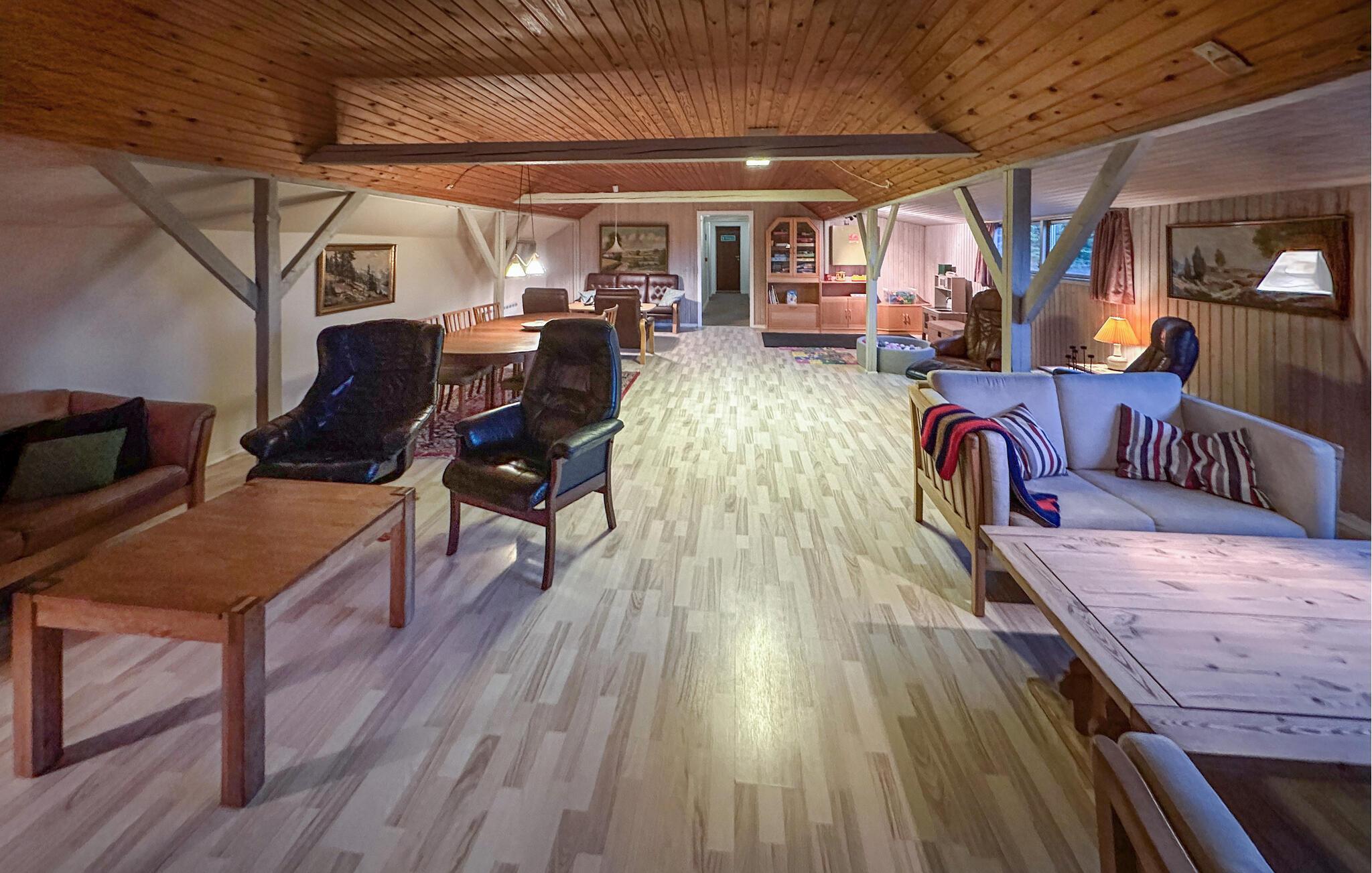 Dette rummelige sommerhus i Grenå er perfekt til store grupper eller familier, der ønsker at tilbringe afslappende og sjove dage sammen. Den praktiske indretning giver plads til alle, mens bordtennis- og poolbordet giver et godt afbræk til sofastunderne. Børnene kan boltre sig i legeområdet eller på legepladsen i haven, mens I kan bruge grillpladsen eller terrassen til afslappende timer. Her er noget for enhver smag – et sted, hvor man simpelthen har det godt.