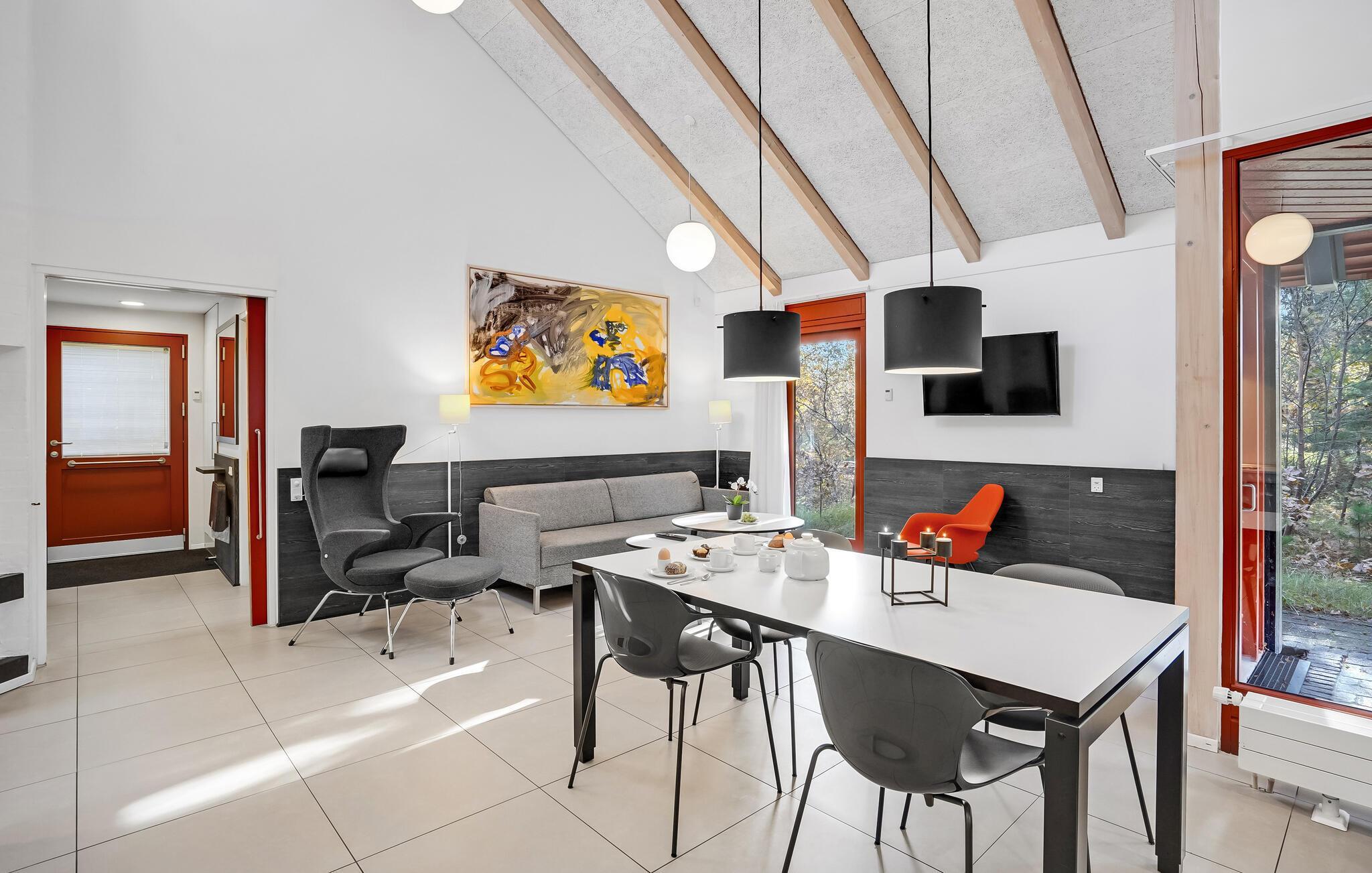 Dette lyse og venlige feriehus kan rumme op mod fem gæster og et lille barn. Huset er praktisk indrettet med gode detaljer som et stort opholdsrum, hvor I både kan sammensætte dagens menu og slappe af, mens ilden knitrer i brændeovnen. Vinduespartierne sørger for et skønt, naturligt lysindfald, hvilket giver jer ekstra behagelige rammer om indendørshyggen.