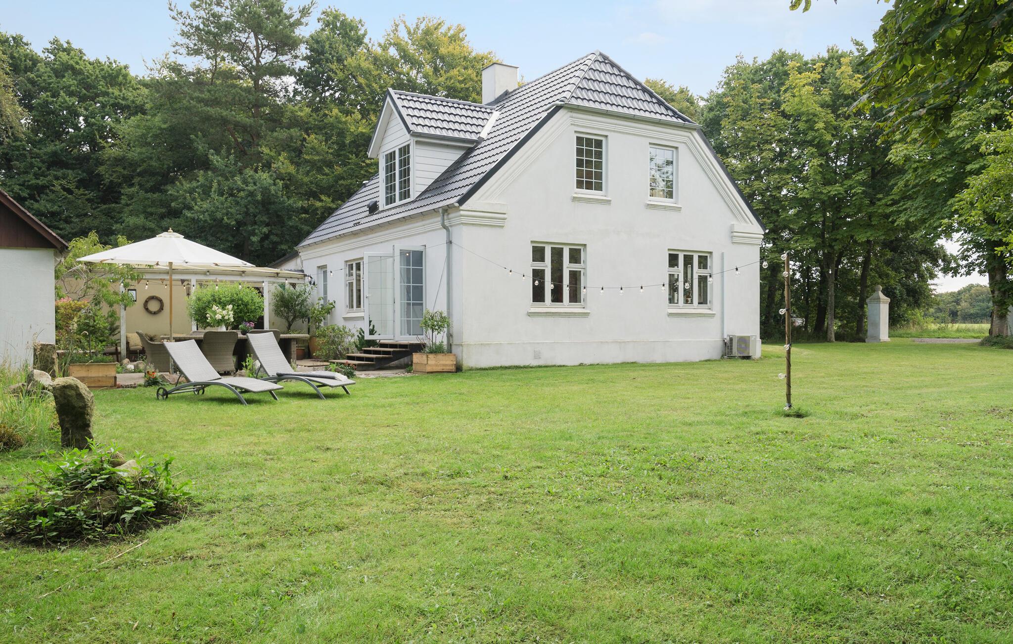 Velkommen til dette elegante hjem, som byder på høj komfort. Huset er fordelt på to etager, og i den skønne stue er der både læsestof og et poolbord. Tilbring hyggelige aftener i øreklapstolen, ved brændeovnen eller over et spil billard. Nyd udsigten til landskabet og den skønne atmosfære i haven. Her kan I sætte jer til rette jer under halvtaget eller i fuld solskin på terrassen. Nyd små alenestunder i den store parklignende have med rhododendronbuske, kæmpetræer, en skovsø, bærbuske og frugttræer. Jeres hunde kan snuse sig gennem haven og gå med jer direkte ud i den lille skov.