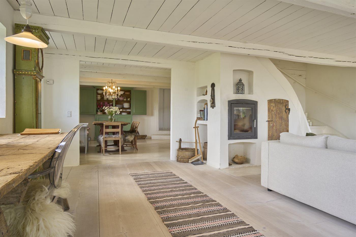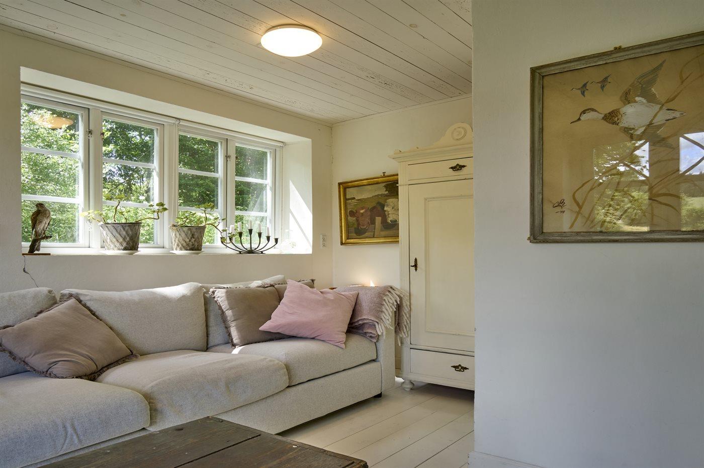 Huset er indrettet med sans for detaljen og hver ting er personligt håndplukket til huset. Stilen er en blanding af vintage og nyt, hvilket passer til husets sjæl. Køkken-alrummet er lyst og udstyret med alt hvad I har brug for, samt Quooker. Stort spisebord, hvorfra der er havudsigt gennem den store lyse stue, hvor udsigten er helt formidabel fra det store vinduesparti. Stuen har to store sofaer, hvor man kan slappe af og nyde udsigten til den ene side og pejsen til den anden. Musikanlæg, som styres via Wifi eller Bluetooth.