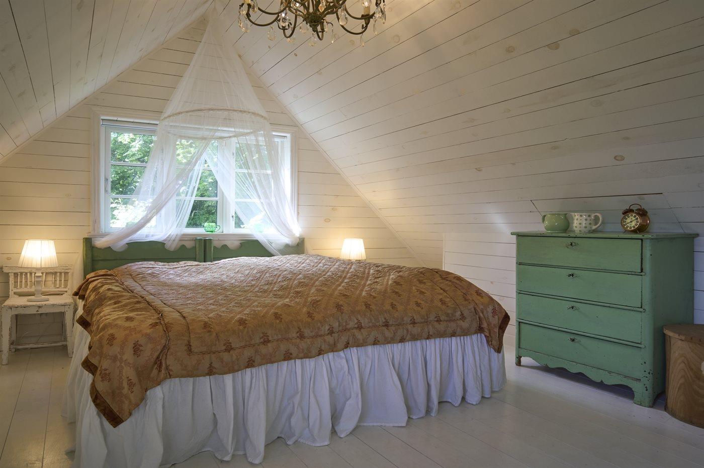 Der er i alt 3 soveværelser. Sovepladserne fordeler sig på: 6 sovepladser i dobbeltsenge. 2 sovepladser på madrasser. 2 af disse sovepladser befinder sig på husets hems.