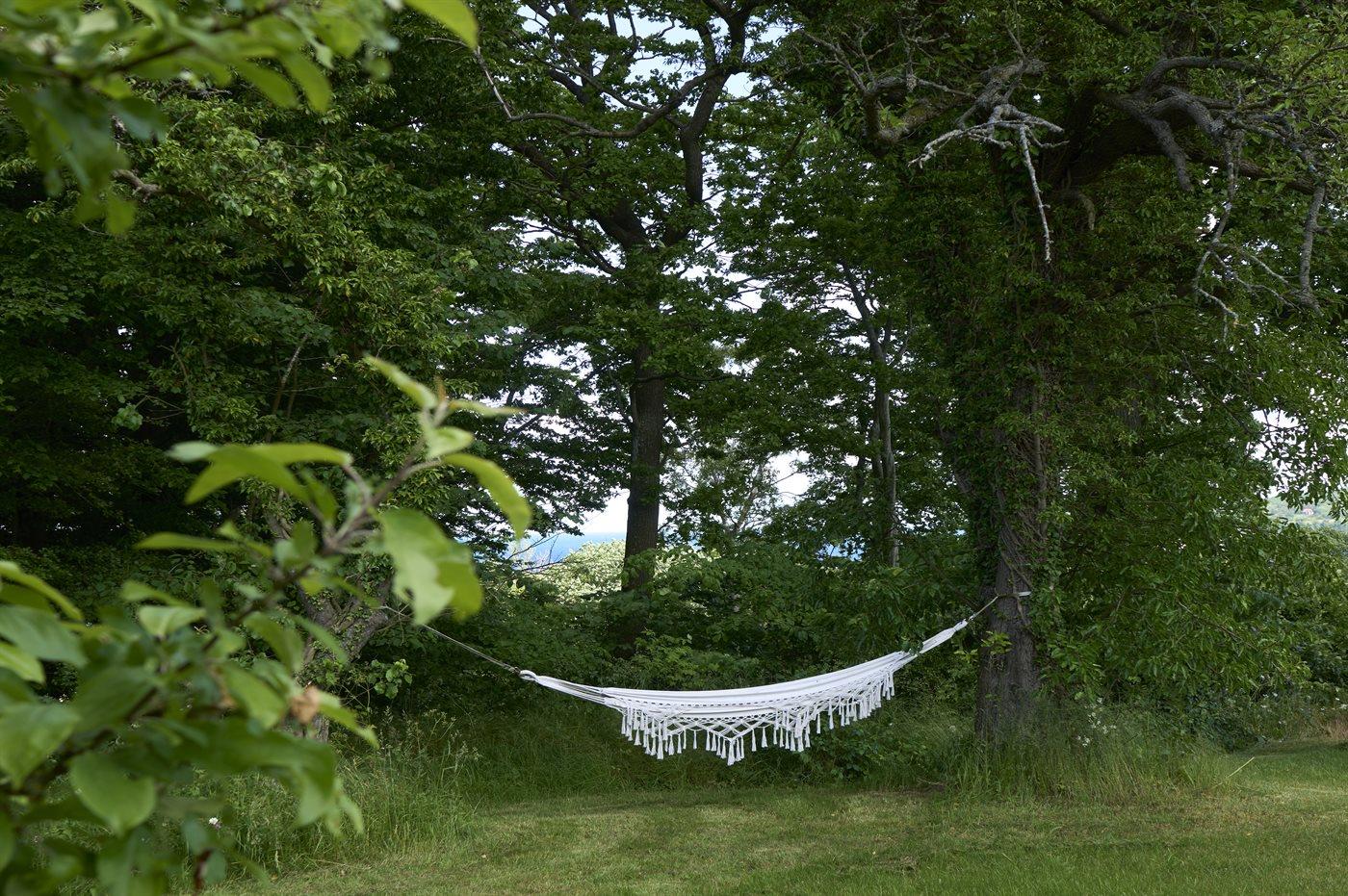 Der er tre terrasser ved huset, alle med havudsigt. Grunden er på 3 hektar, som ligger rundt om huset og helt ned til klipperne og ud i havet, på den anden side af landevejen. 250 m fra huset finder du den smukke klippesti mellem Gudhjem og Helligdommen. I haven er der en stor bålplads, hængekøje og masser af plads. Der er gode parkeringsforhold ved huset.