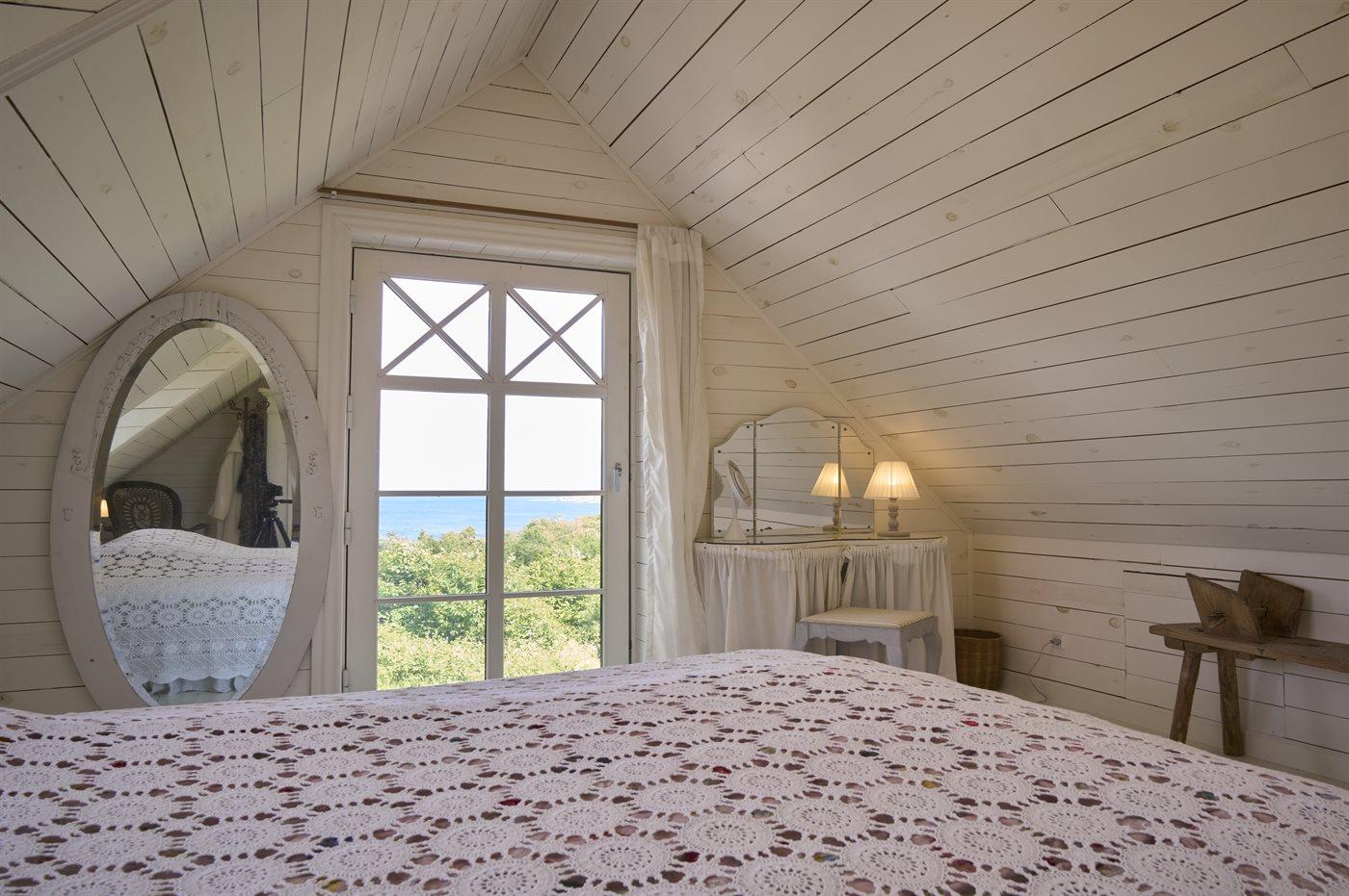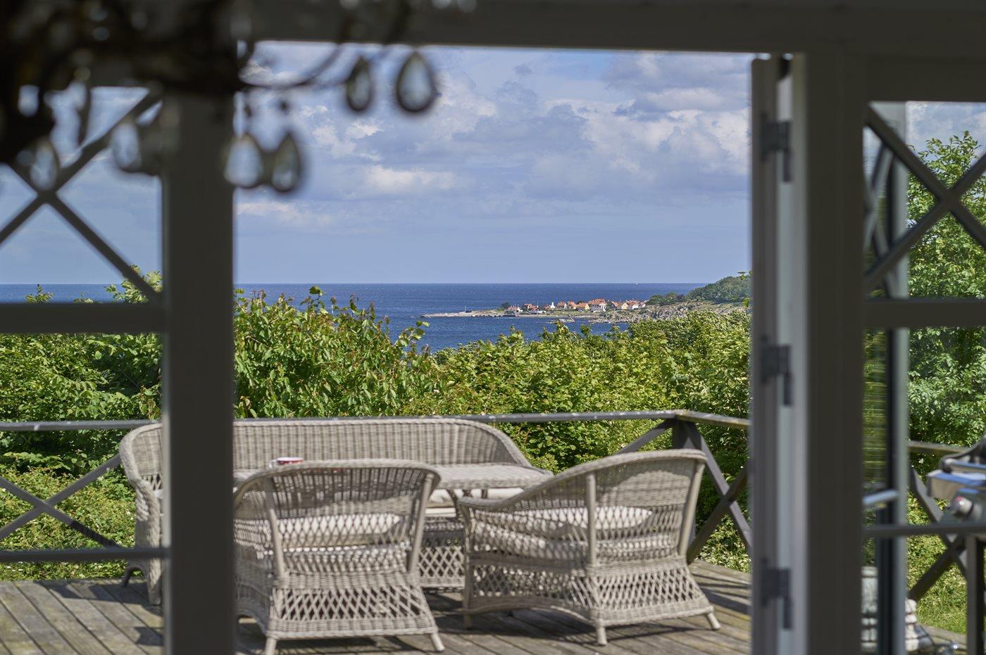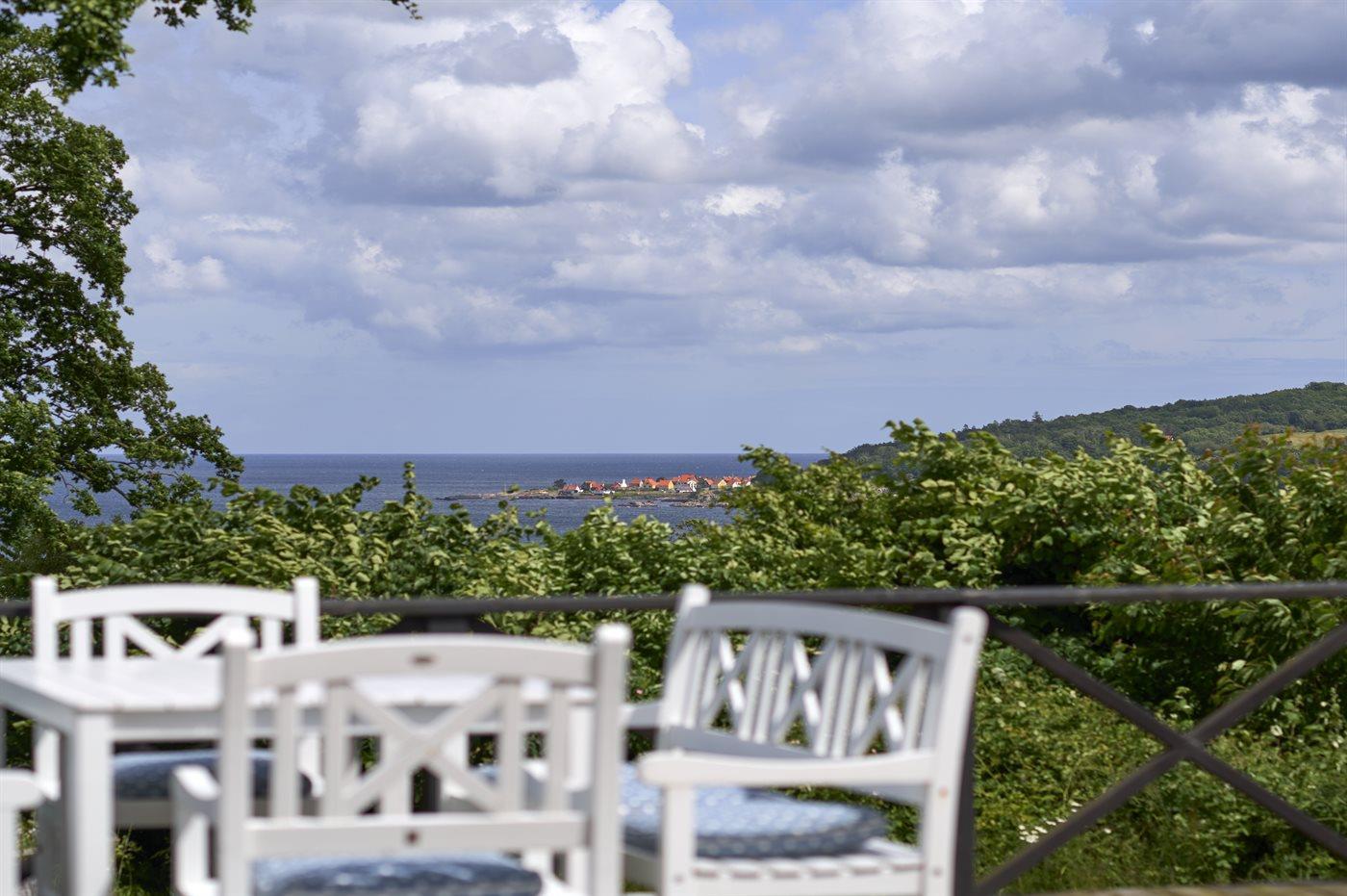 Huset er placeret højt i terrænet, som skråner ned mod Salenebugten og Helligdomsklipperne. Husets udsigt over Østersøen og Gudhjem er betagende.