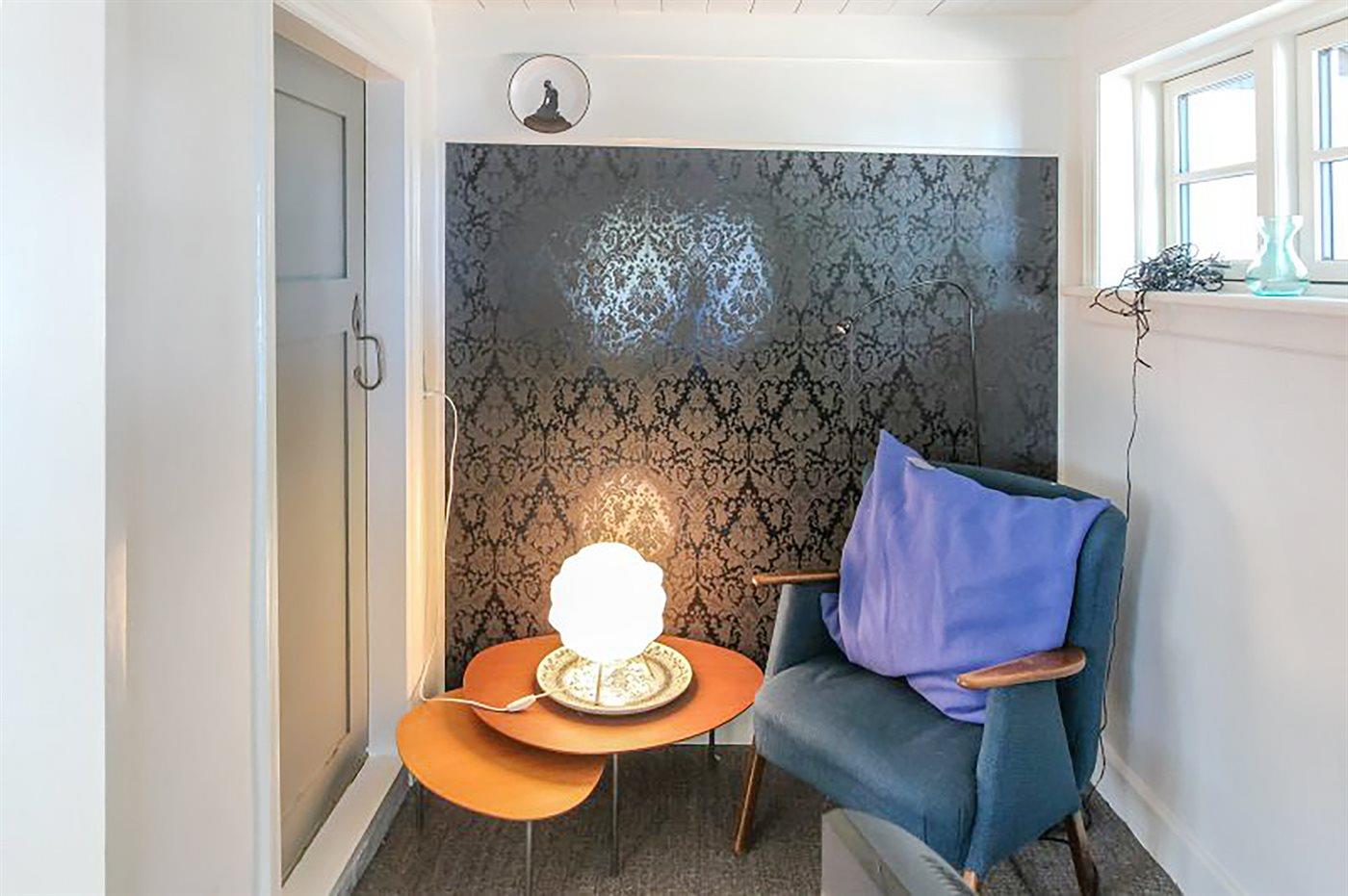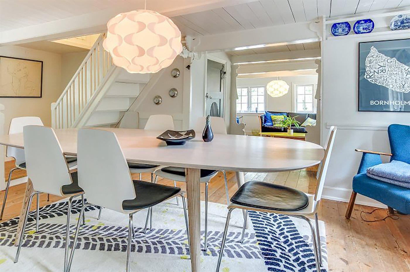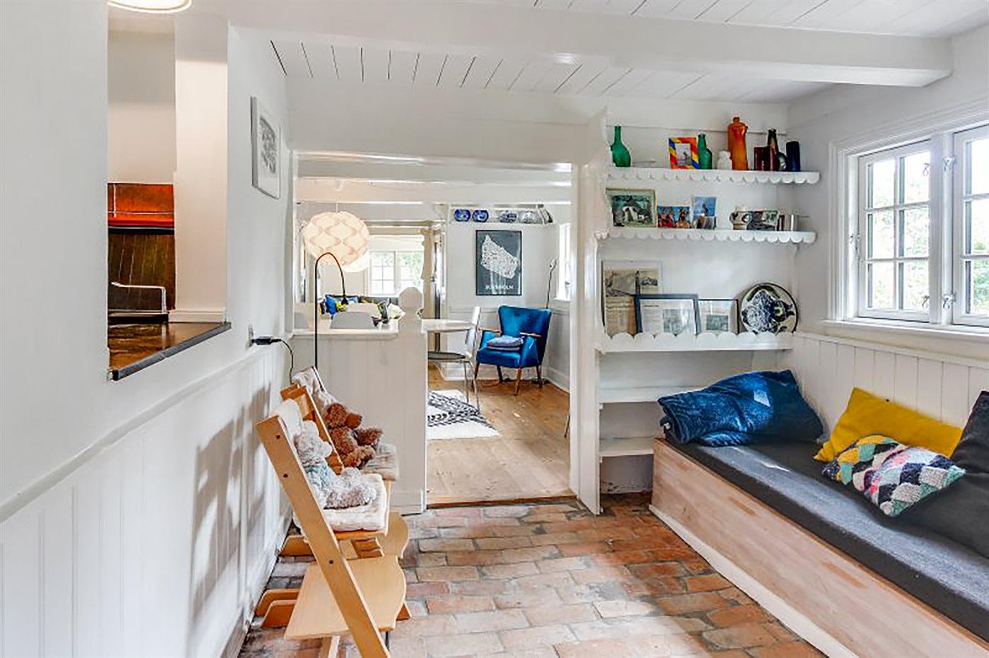 Det er lykkedes at give de lavloftede stuer og rum i øvrigt en moderne møblering, med forståelse for at lade enkelte ældre indbo og ting indgå, fordi de passer til huset.