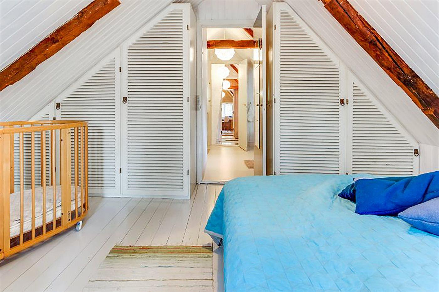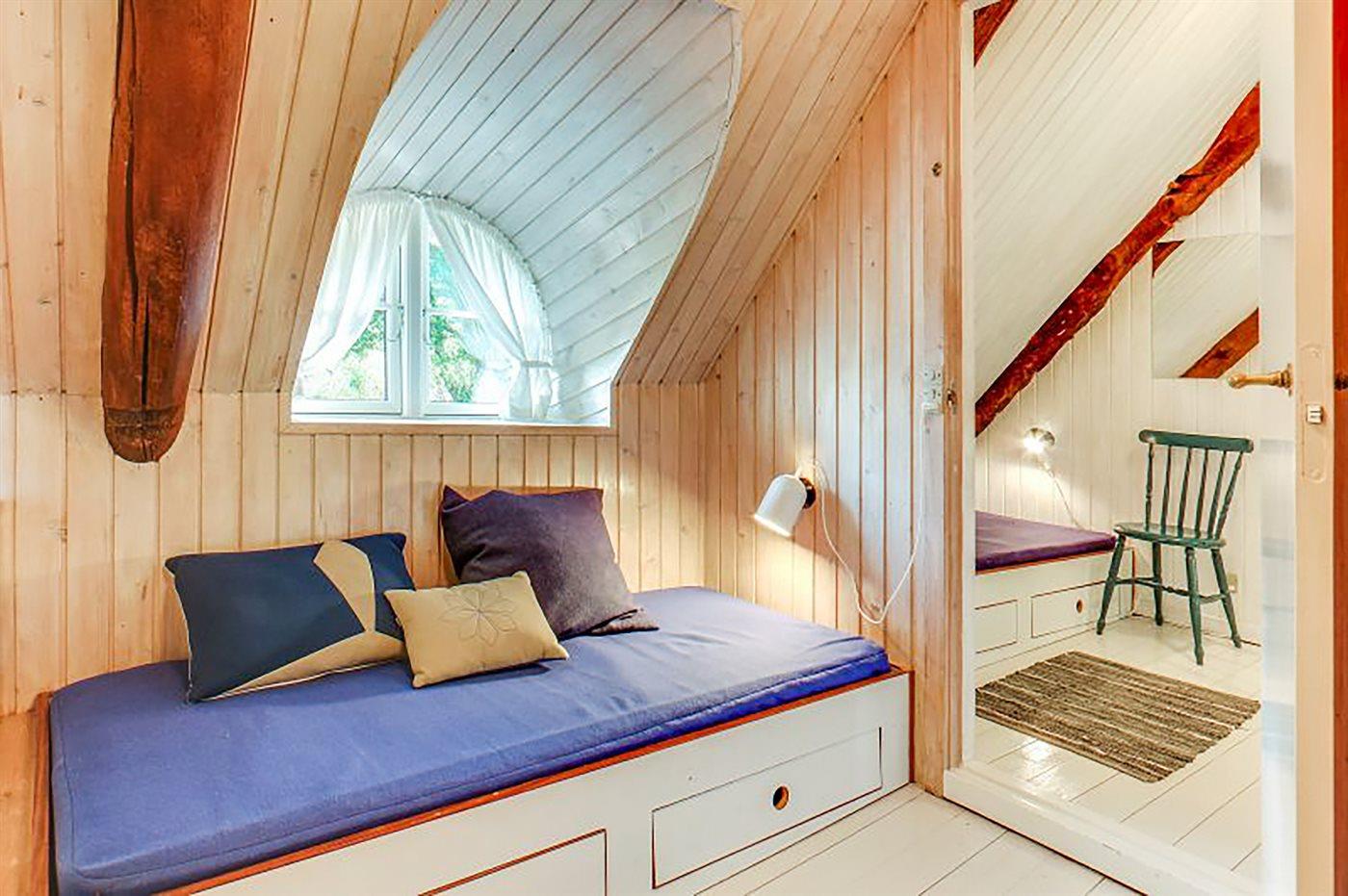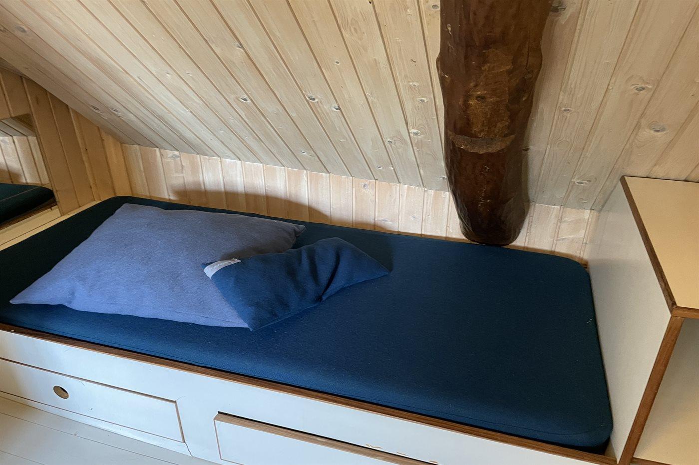 Huset er i to plan. Der er 8 sovepladser på 1. sal, fordelt på 4 soverum, som ligger i forlængelse af hinanden med et badeværelse imellem. Skibssenge er med springmadrasser. I stueplan er der et soveværelse nær køkkenet med en enkeltseng. I huset findes to TripTrap-stole og en Stokke - barneseng, der tillige kan fungere som kravlegård.