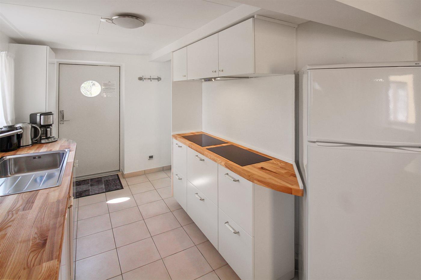 Køkkenet er udstyret med 1 køleskab. Der er 4 induktionskogeplader, varmluftovn, mikrobølgeovn samt opvaskemaskine Der er gulvvarme i køkkenet.