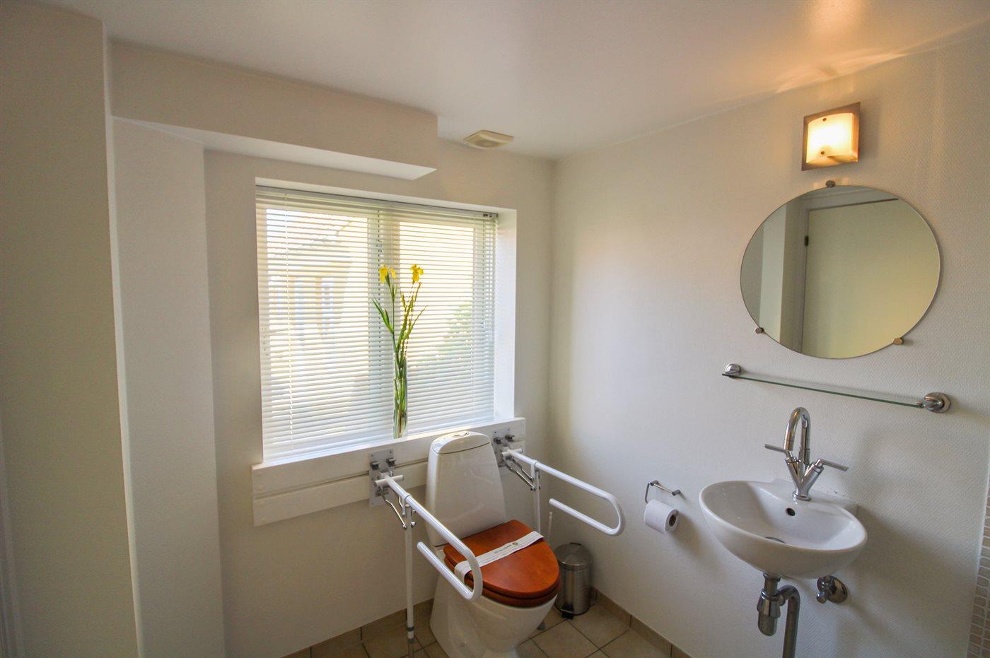 I badeværelse er der ekstra håndtag i bruseniche, badebænk og armstøtter (der kan slåes ned) ved toilet samt udluftningskanaler over vinduerne, der betjenes manuelt og elektrisk udluftning, som tændes sammen med lyset.