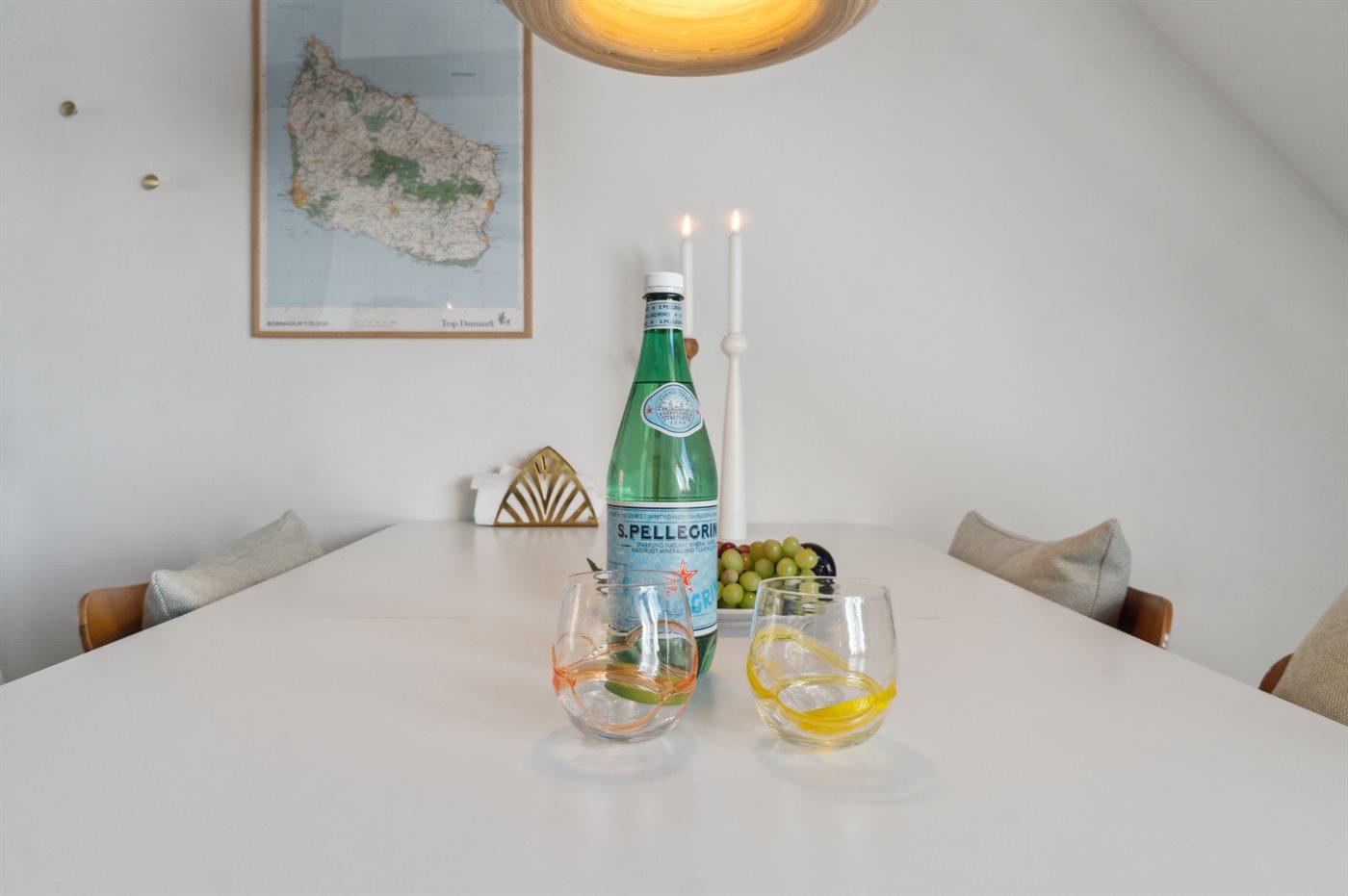 Ferielejligheden er ideel til et par med børn, men kan også anbefales til to vennepar, der vil opleve det magiske ved Gudhjem, der med sin klippehavn jo er forbindelseslinje til Christians Ø.