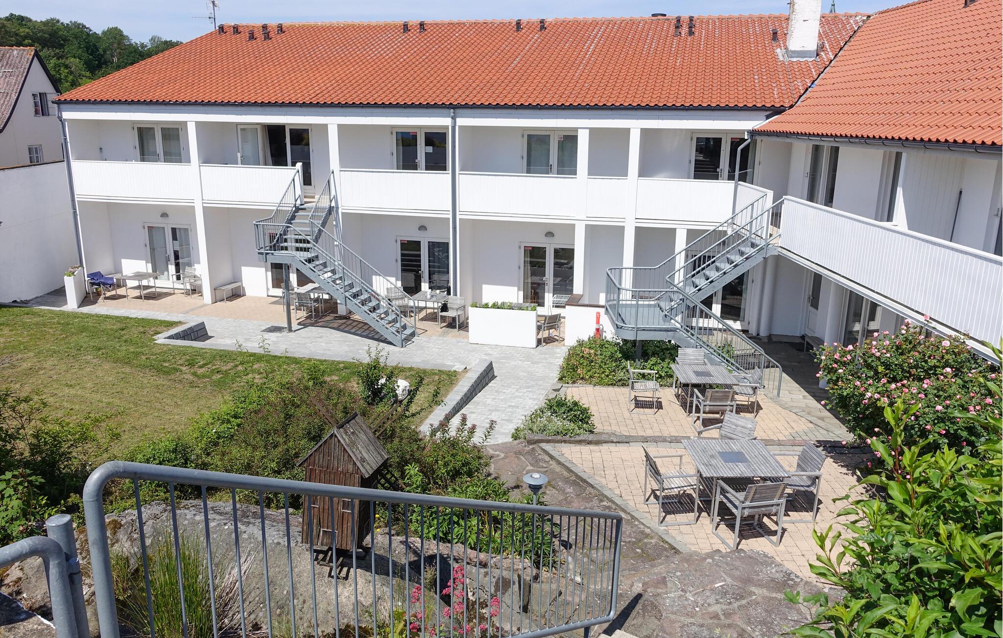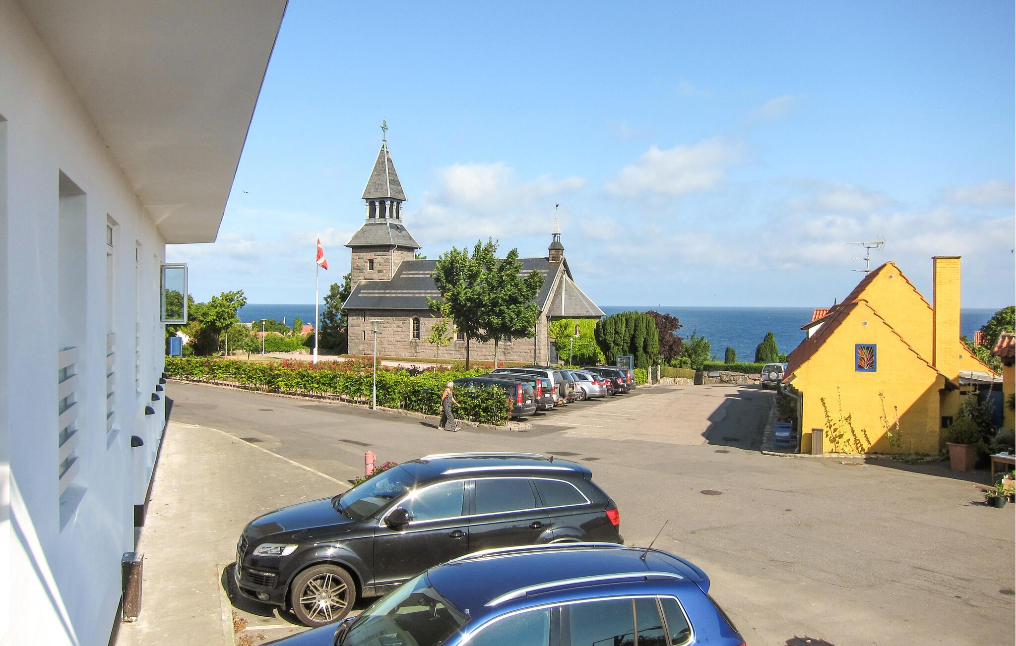 Modern ferielejlighed med havudsigt, fælles pool og central beliggenhed i charmerende Gudhjem.