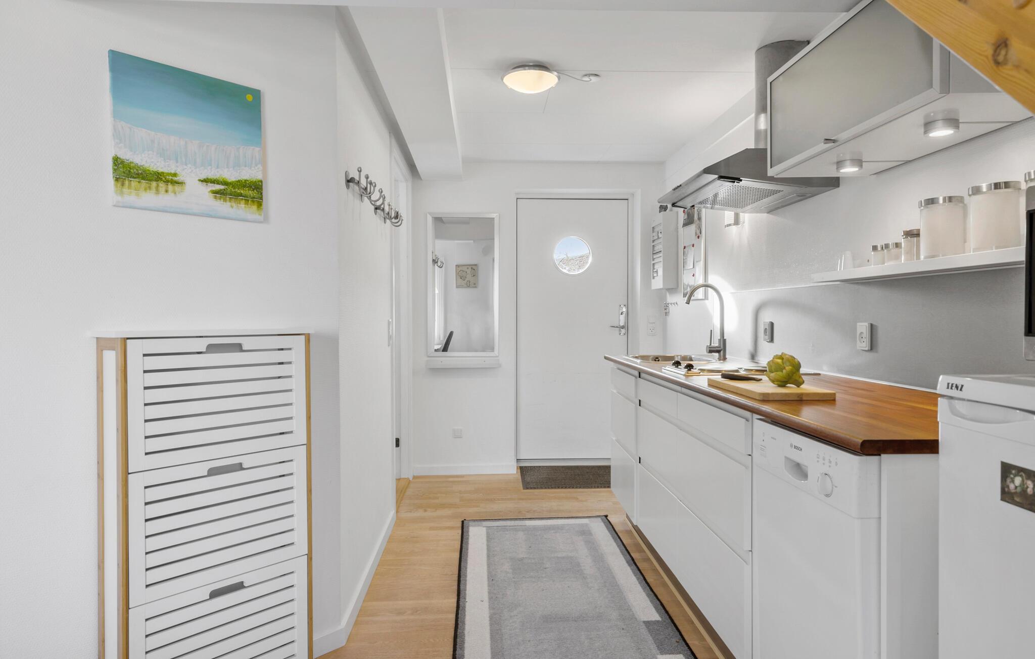 Velkommen til denne velindrettede ferielejlighed, som lægger op til en harmonisk ferie langt væk fra hverdagen. Tilbered lækre retter i det lyse og moderne køkken og nyd dem i den hyggelige spiseplads med udsigt til Gudhjems tage. Slap af på den store sofa i den lyse stue, læs en bog eller hold en afslappende filmaften.