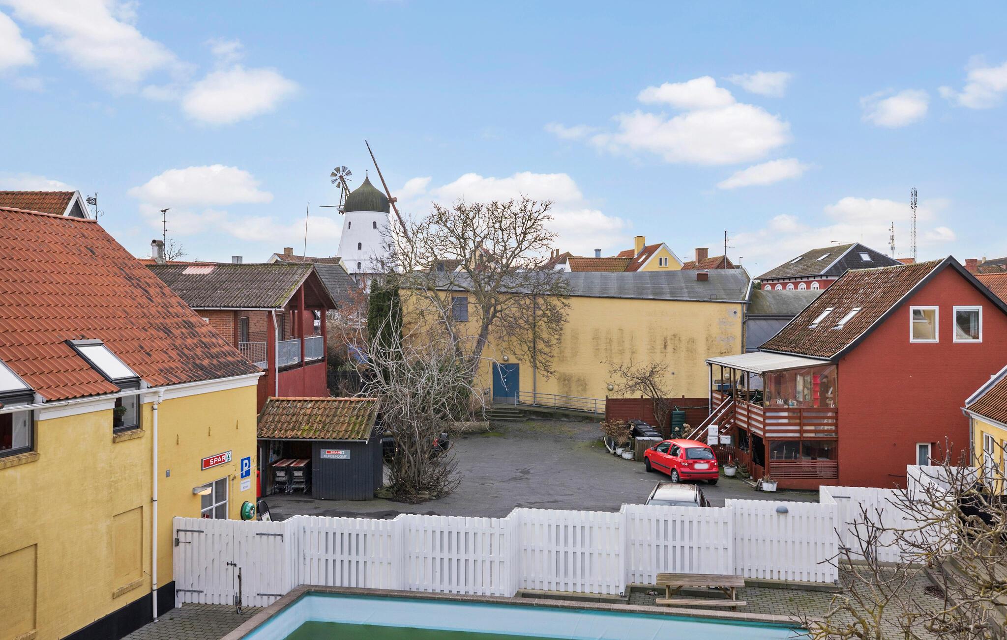 Stilfuld ferielejlighed med delvis havudsigt, fælles pool og central beliggenhed i charmerende Gudhjem.