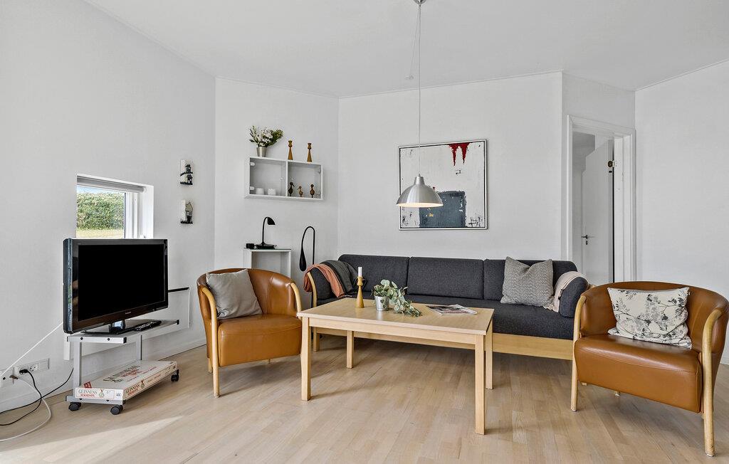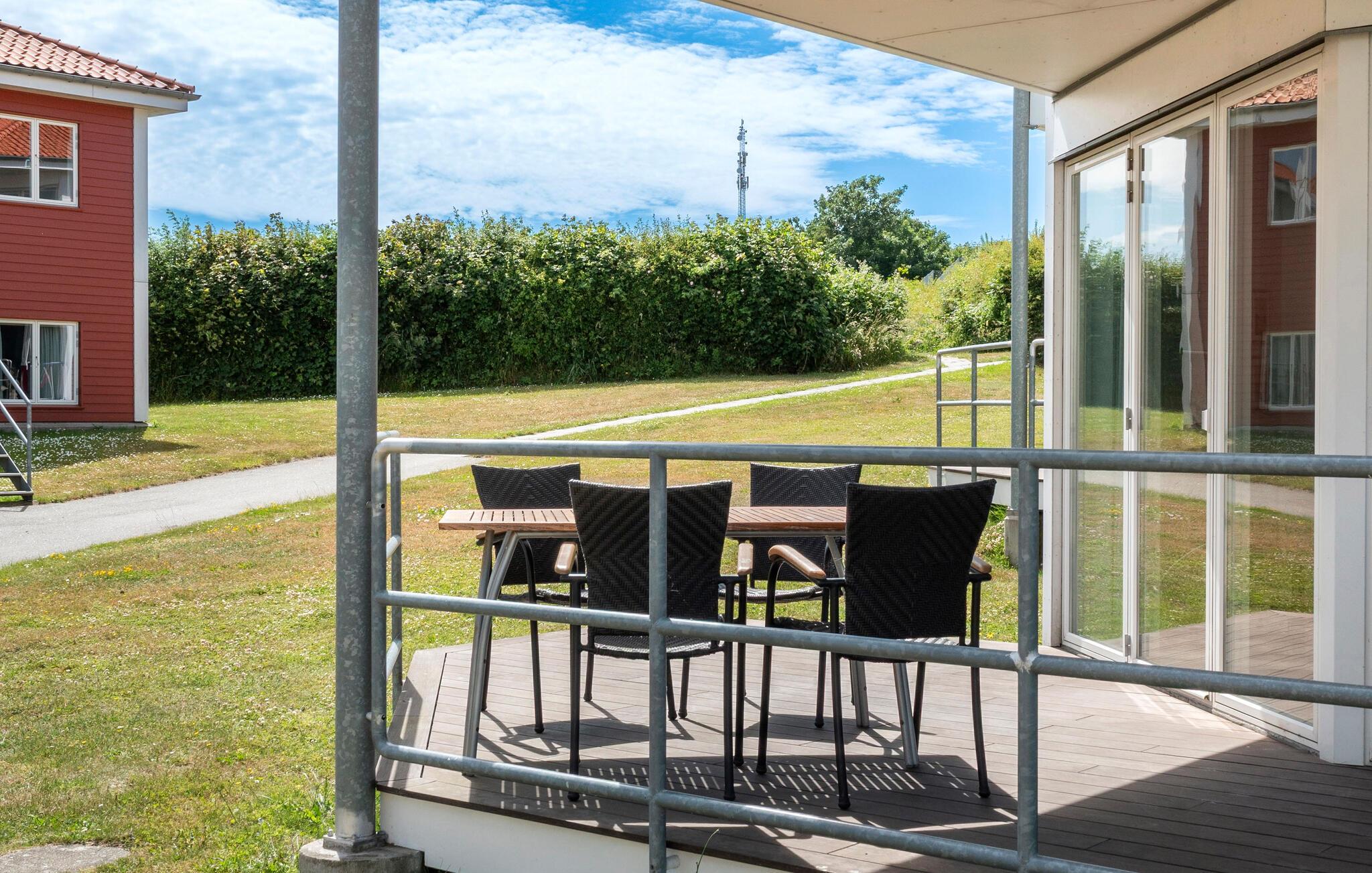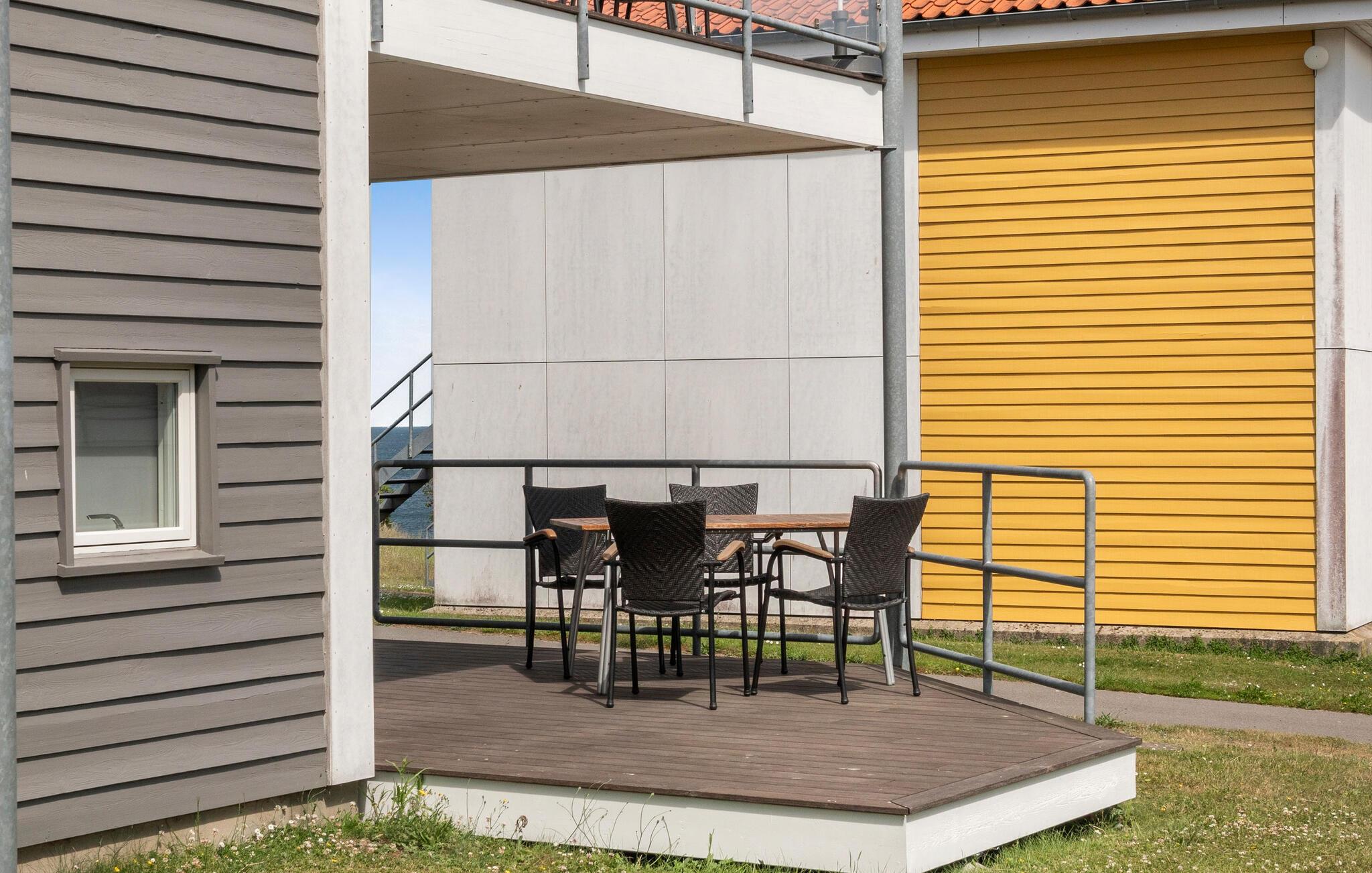 Til lejligheden hører to terrasser. Den ene er foran indgangsdøren, den anden er ved siden af stuen, så I kan finde sol, skygge og læ efter behov i løbet af dagen. Herfra kan I også spejde ud over havet, som kun er en kort gåtur væk.