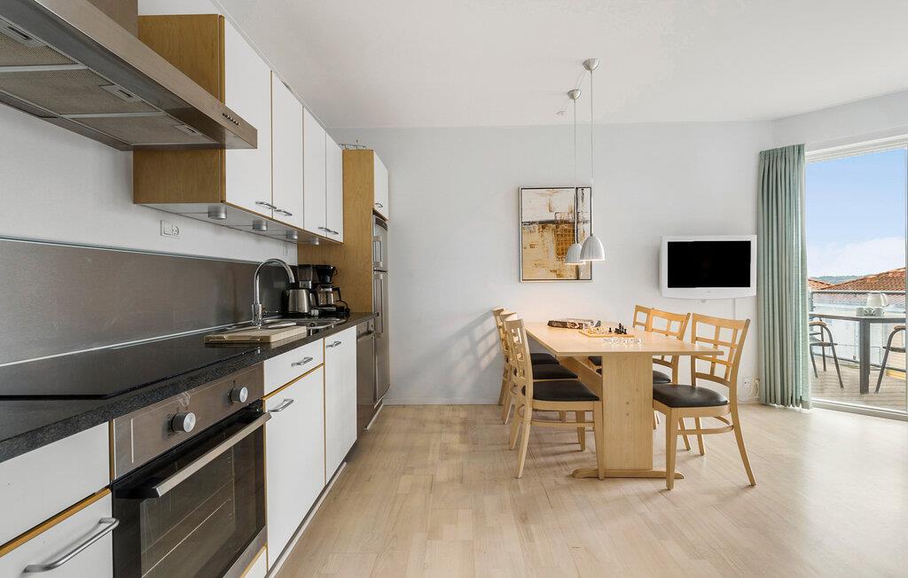 Charmerende ferielejlighed i Gudhjem med havudsigt, moderne faciliteter og nærhed til strand og legepladser.