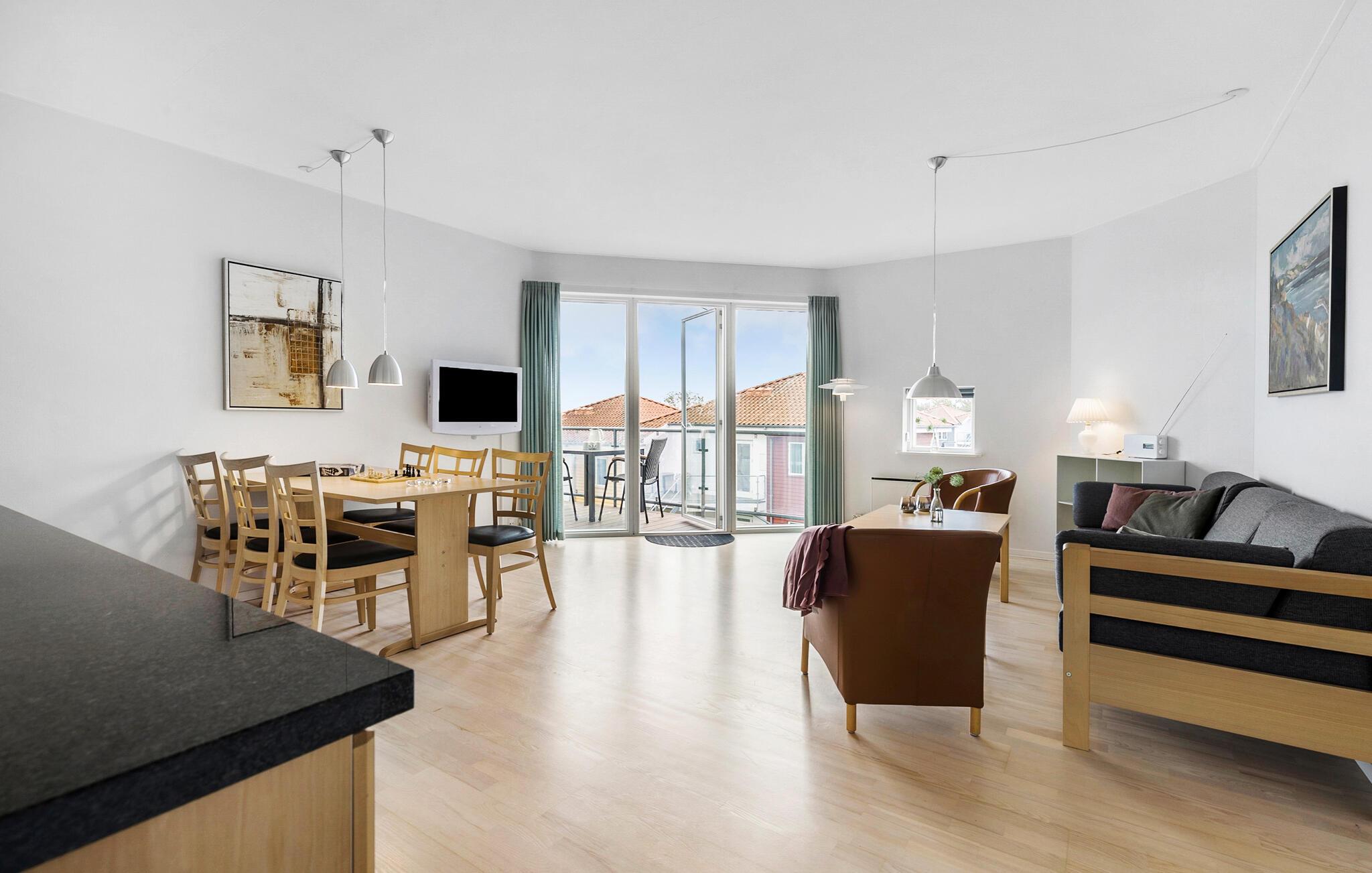 Denne charmerende indkvartering i Gudhjem er en del af et indbydende ferieanlæg og tilbyder jer alt, hvad I har brug for til en afslappende ferie. Jeres ferielejlighed på første sal imponerer med sin lyse, venlige atmosfære og en høj kvalitet af udstyr, der sørger for velvære. Uanset om I laver mad sammen i det moderne køkken, hygger jer med spil om aftenen eller blot ønsker at slappe af, finder I her det ideelle sted. Balkonen giver en rolig plads udendørs, hvor I kan nyde den friske luft og udsigten over Østersøen. Desuden når I havet på blot få minutters gang. Udendørsområdet har mange legepladser for børn.