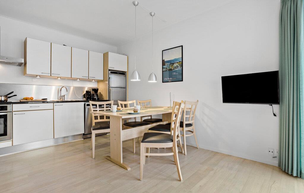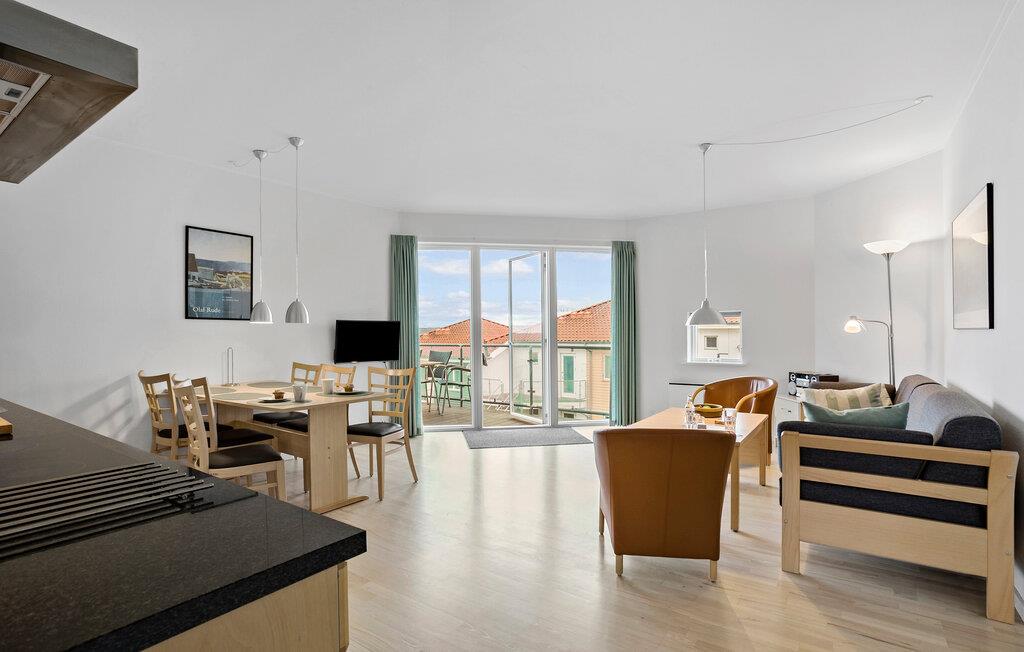 Denne lyse og smagfulde ferielejlighed giver jer adgang til afslappende øjeblikke ikke langt fra den maleriske kyst. Sammensæt lækre måltider i det moderne kvalitetskøkken og nyd dem ved det stilfulde spisebord. Efter en lang dag i den friske havluft, kan I finde jer godt til rette i sofaen og streame en god serie.