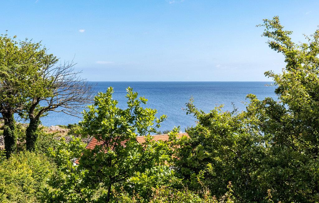 Moderne lejlighed i Gudhjem med havudsigt, to terrasser og kort afstand til strand og byliv.