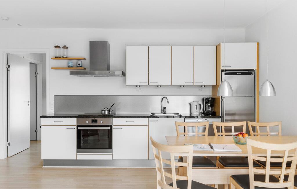 Lejlighederne i komplekset er identiske, og hvis I gerne vil rejse som en større flok, finder I et stort udvalg af boliger, så I kan holde ferie sammen og stadig nyde mulighed for privatliv og god komfort. Indretningen fremtræder lyst og komfortabelt med velvalgte materialer og et fuldt udstyret køkken, hvor I kan tilberede familiens livretter efter en herlig dag på farten. Senere kan I hive brætspillene frem eller rykke over i stuen med snacks og en god film, mens I lægger planer for de kommende dage.