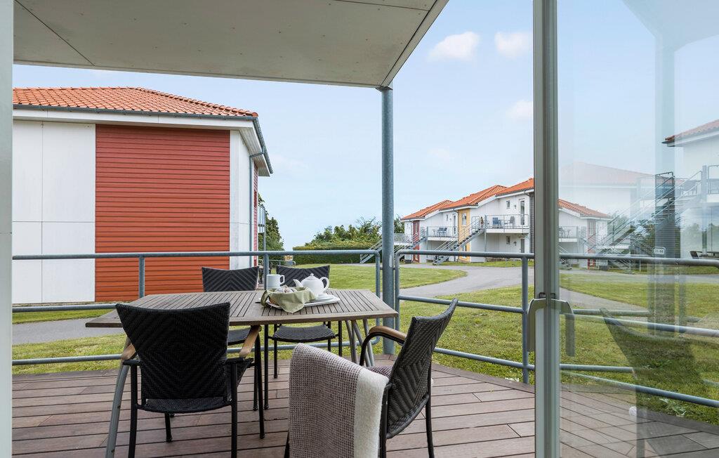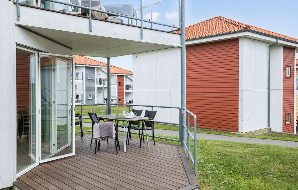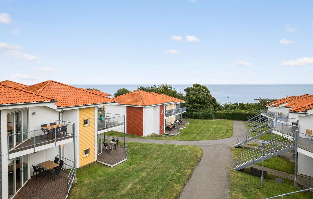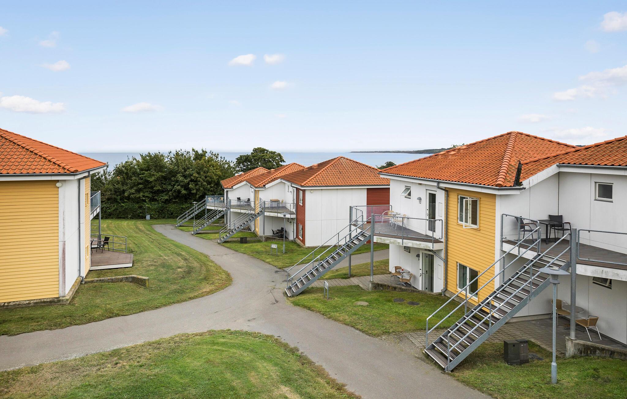 På terrassen kan I tilbringe de lune sommeraftener med et dejligt måltid, mens I kigger ned til havet og nyder den friske luft. Har I børn med, er der flere forskellige legestativer i fællesarealet.