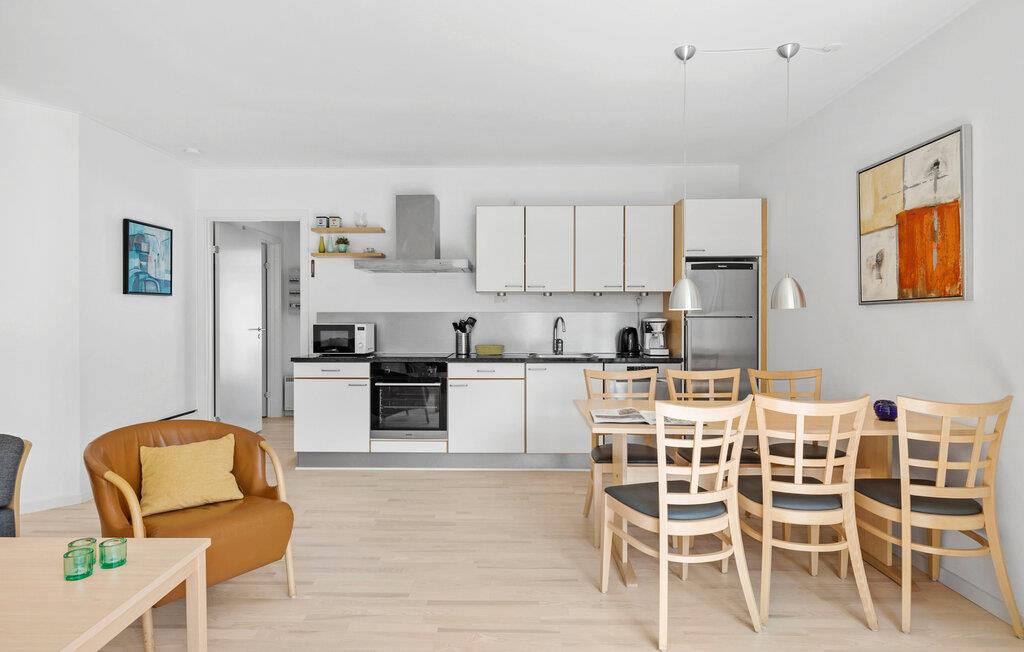 Lejlighederne i komplekset er identiske, og hvis I gerne vil rejse som en større flok, finder I et stort udvalg af boliger, så I kan holde ferie sammen og stadig nyde mulighed for privatliv og god komfort. Indretningen fremtræder lyst og komfortabelt med velvalgte materialer og et fuldt udstyret køkken, hvor I kan tilberede familiens livretter efter en herlig dag på farten. Senere kan I hive brætspillene frem eller rykke over i stuen med snacks og en god film, mens I lægger planer for de kommende dage.