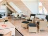 Lejligheden er moderne, rummelig og smagfuldt indrettet. Den store force er havudsigten, som kan ses fra seks kvistvinduer og det store gavlvindue. Læn jer tilbage i havemøblerne på altanen, mens I nyder udsigten til havet.
