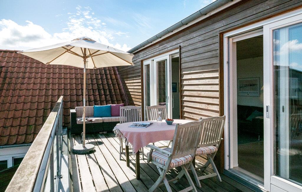 Lejligheden er moderne, rummelig og smagfuldt indrettet med flotte, danske designklassikere, så I kan se frem til at slappe af i æstetiske omgivelser ude og inde. Når solen er fremme, kan I vælge mellem to træterrasser, den ene med havudsigt og den anden mod sydvest. Begge har havemøbler, og den store terrasse har desuden grill, så her kan I få mange af timerne til at gå.